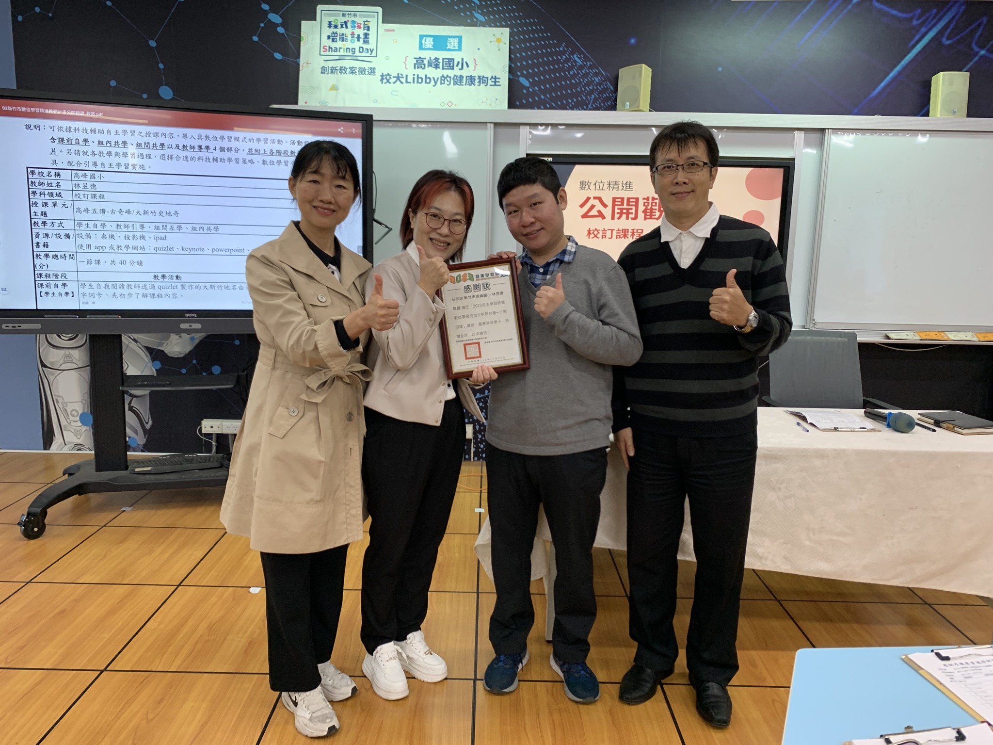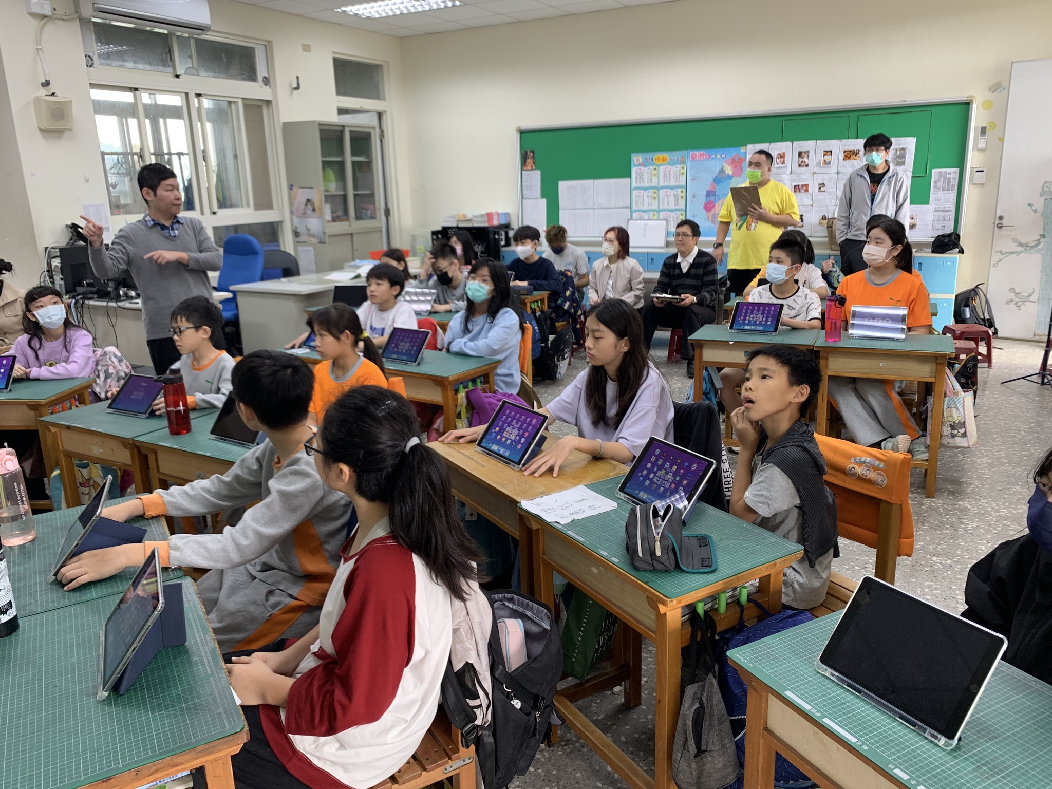 以「棧-古奇峰(人文)」及「佔-E指峰(科技)」跨領域課程為主題,林昱德教師以四學模式設計「大新竹史地奇」六年級課程:「學生自學」,運用Quizlet幫助學生自學地名的由來;「組內共學」,以Ketnote將地名由來進行歸納與分析;「組間互學」,以Padlet平台統整各組討論結果;最終「教師導學」,運用Quizlet Live進行總結性評量遊戲,並統整學習內容。透過公開觀議課的教學分享,精進課程內容,聚焦於提升學生的學習成效,高峰國小運用數位科技翻轉教育已為常態,期盼改變課堂創新風貌,師生共學譜出新篇章。