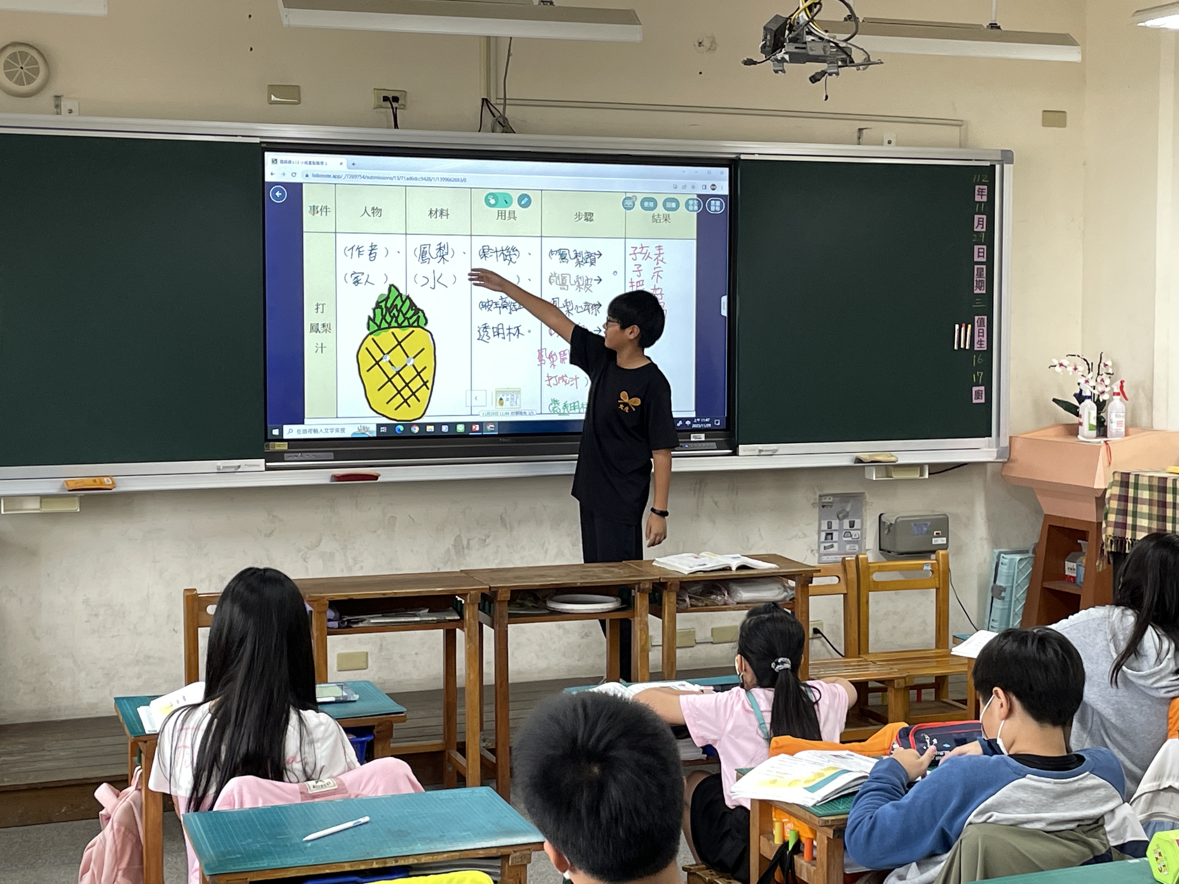 這次的觀課,透過Lolionote獨有的卡片介面,帶領孩子將長達六面的課文搭配表格,將課文大意整理出來,並大方地上台分享自己及小組的成果,為我們演示一場以學生為主體的學習,看著孩子們專心的投入學習,在場的老師也大力讚賞孩子的表現。