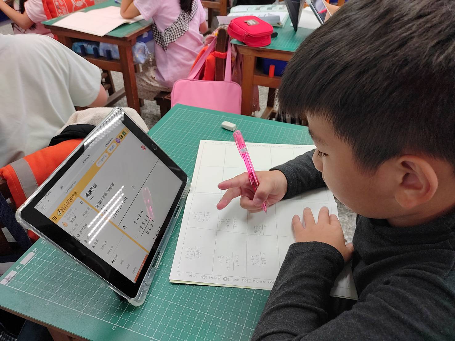 升上三年級,數學課程開始運用因材網來進行單元診斷,檢視孩子們的學習成果。孩子們在二年級已練習因材網的自學,因此大部分孩子很快能完成登錄帳號、密碼等步驟,認真進入單元題目的測驗,少數不熟悉操作的孩子,在老師和同學的指導下,也能逐漸步上軌道。測驗後立即進行成果檢視,應用題搭配簿本計算,孩子訂正時可從前次的計算中檢視錯誤所在並修正,再次挑戰測驗,成績的進步與回饋,更增長了孩子們的信心與學習興趣。