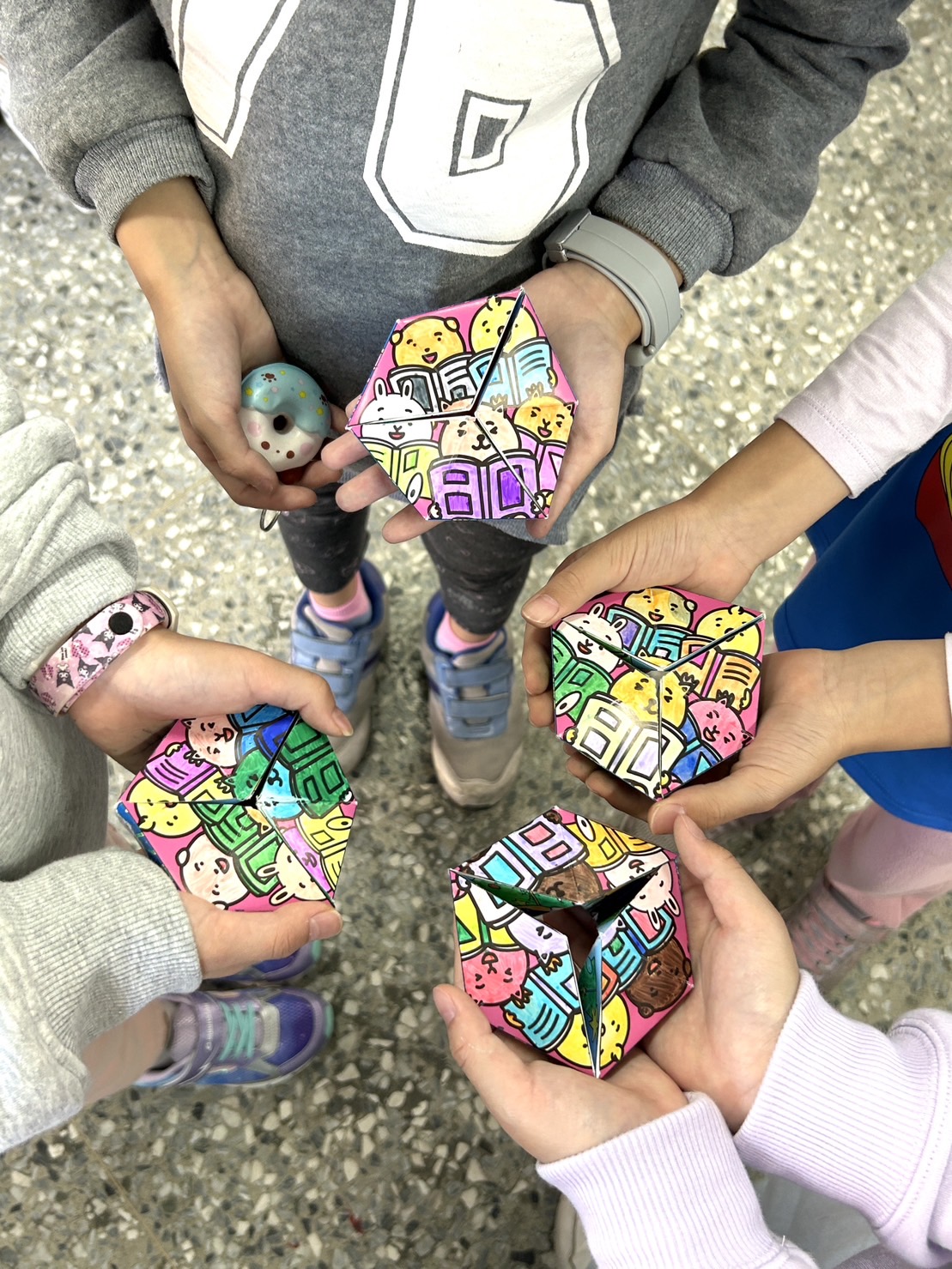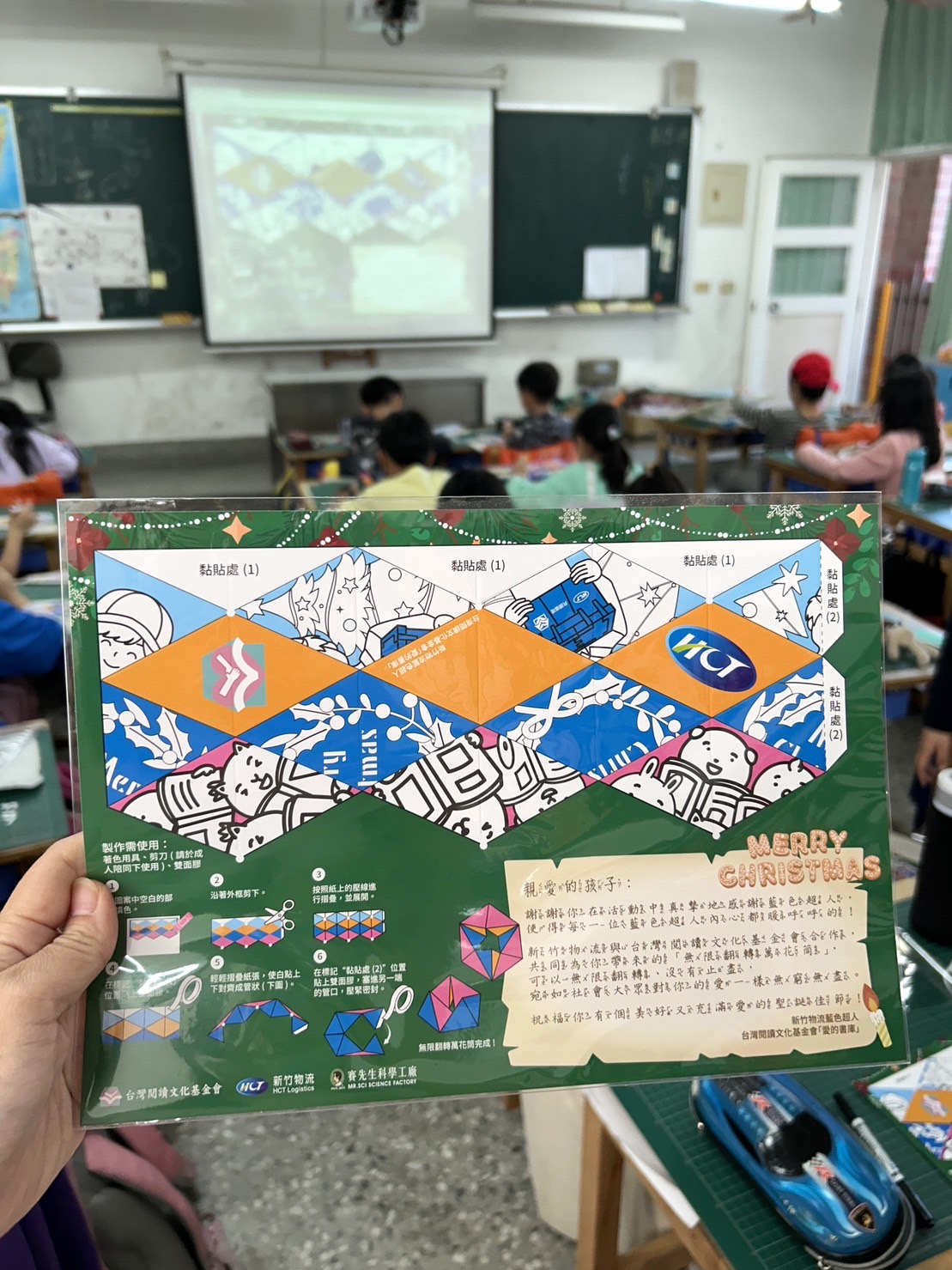 一收到藍色超人的回禮,313陳璿如老師就帶著學生體驗神奇的「無限翻轉萬花筒」,孩子們互相幫忙,研究怎麼正確黏貼才能成功組裝起來,甚至發現了360度翻轉的玩法,特地展示給老師看他們的有趣觀察。全班師生收到這次的「聖誕節-無限翻轉萬花筒」科學玩具,也非常感謝「愛的書庫」的分享,學習歷程中專心聽老師解說,同學們互相幫忙解決困難,挑戰成功!也一起沉浸溫馨氣氛裡,分享彩繪與玩法,都捨不得放學呢!