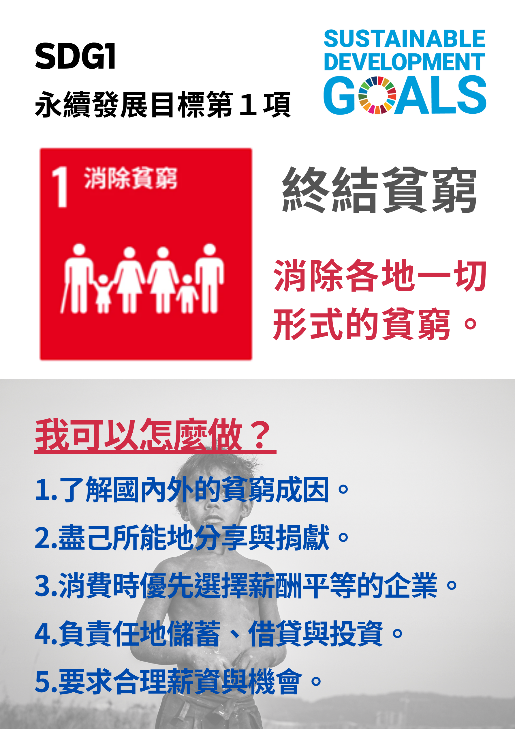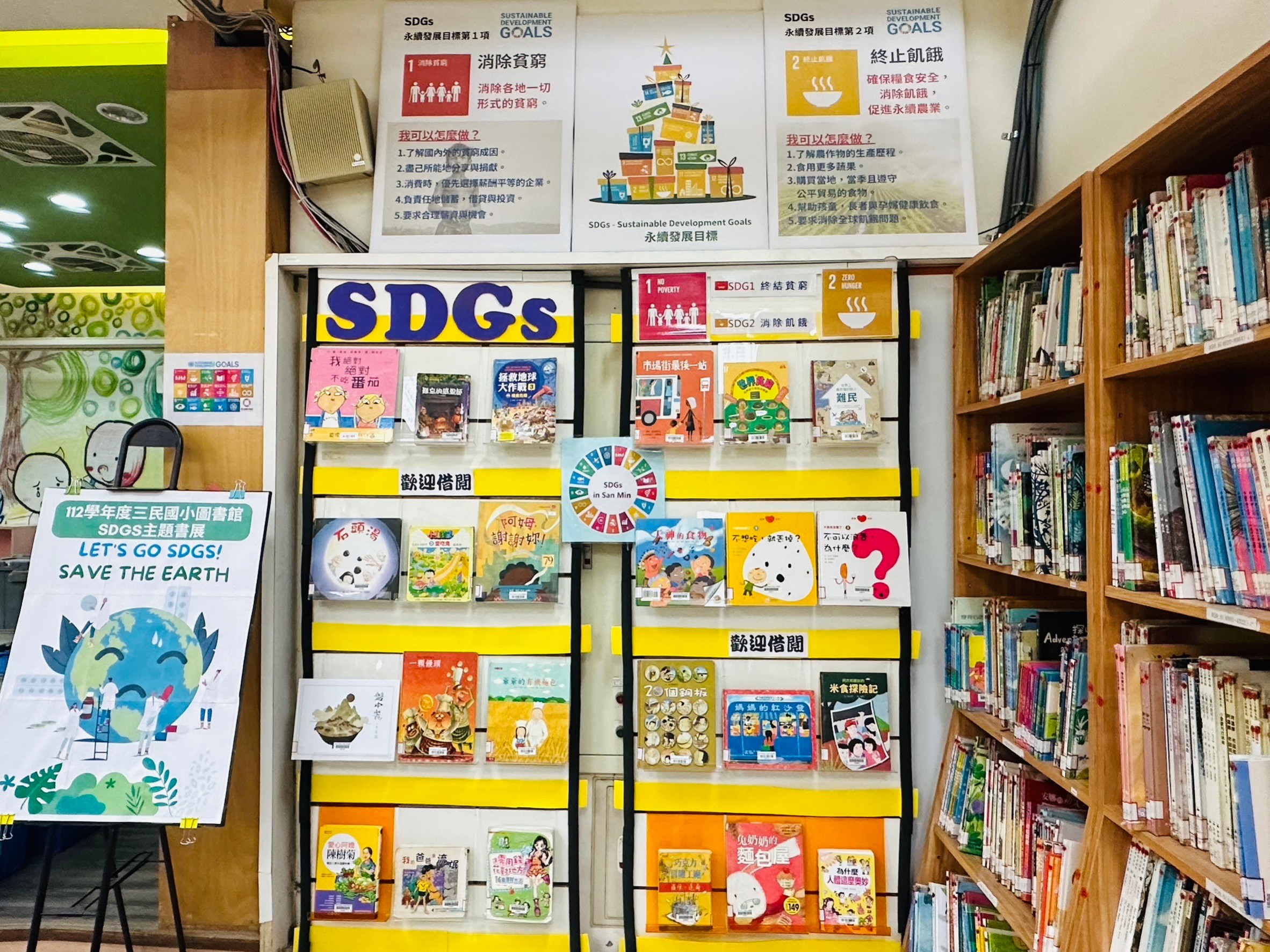 三民國小圖書館響應「2030聯合國永續發展目標」,12月書展宣導主題為SDG1消除貧窮、SDG2終止飢餓。SDG1消除貧窮的實現將使更多人獲得基本的生存保障,改善生活水平,促進社會和諧穩定;SDG2終止飢餓的實現將確保人人都能獲得充足的糧食,改善營養狀況,促進健康發展。兩個目標有著密切的聯繫,貧困是飢餓的重要原因,貧困人口往往無法獲得充足的糧食,容易發生飢餓,消除貧窮可以有效減少飢餓的發生。而生活在物質條件富足的台灣,我們還可以做哪些努力呢?