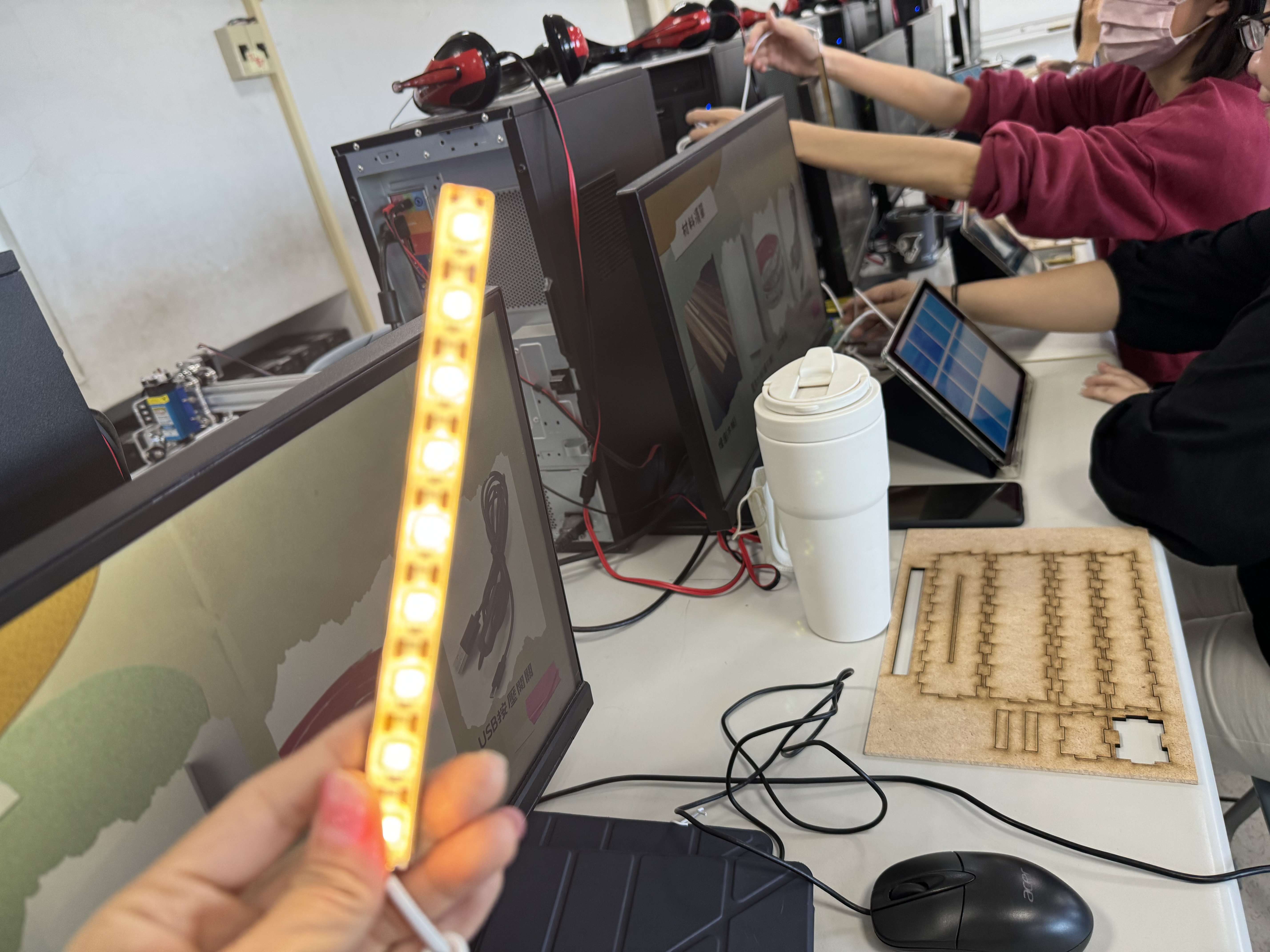 112年12月15日在新竹市教育會的支持下,由劉老師和陳老師在香山國小資訊科技教室,帶領老師們進入雷雕小夜燈的手作創客體驗。
