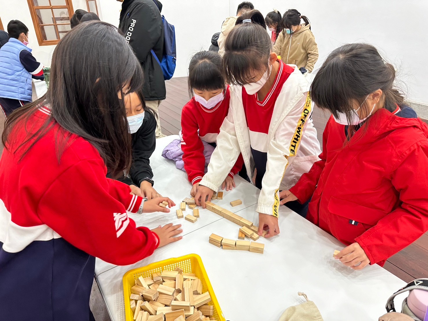 聆聽完導覽老師的說明後,以積木為材料,孩子們合力共作,體驗過往荷蘭式砌磚法的技術,讓自己化身為百年前的建築師,築城牆,蓋屋舍,尋找隱藏在建築物中古人的智慧。