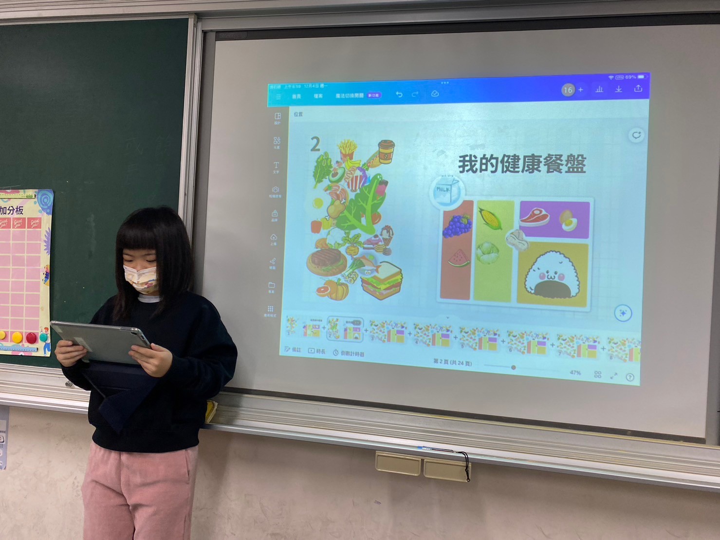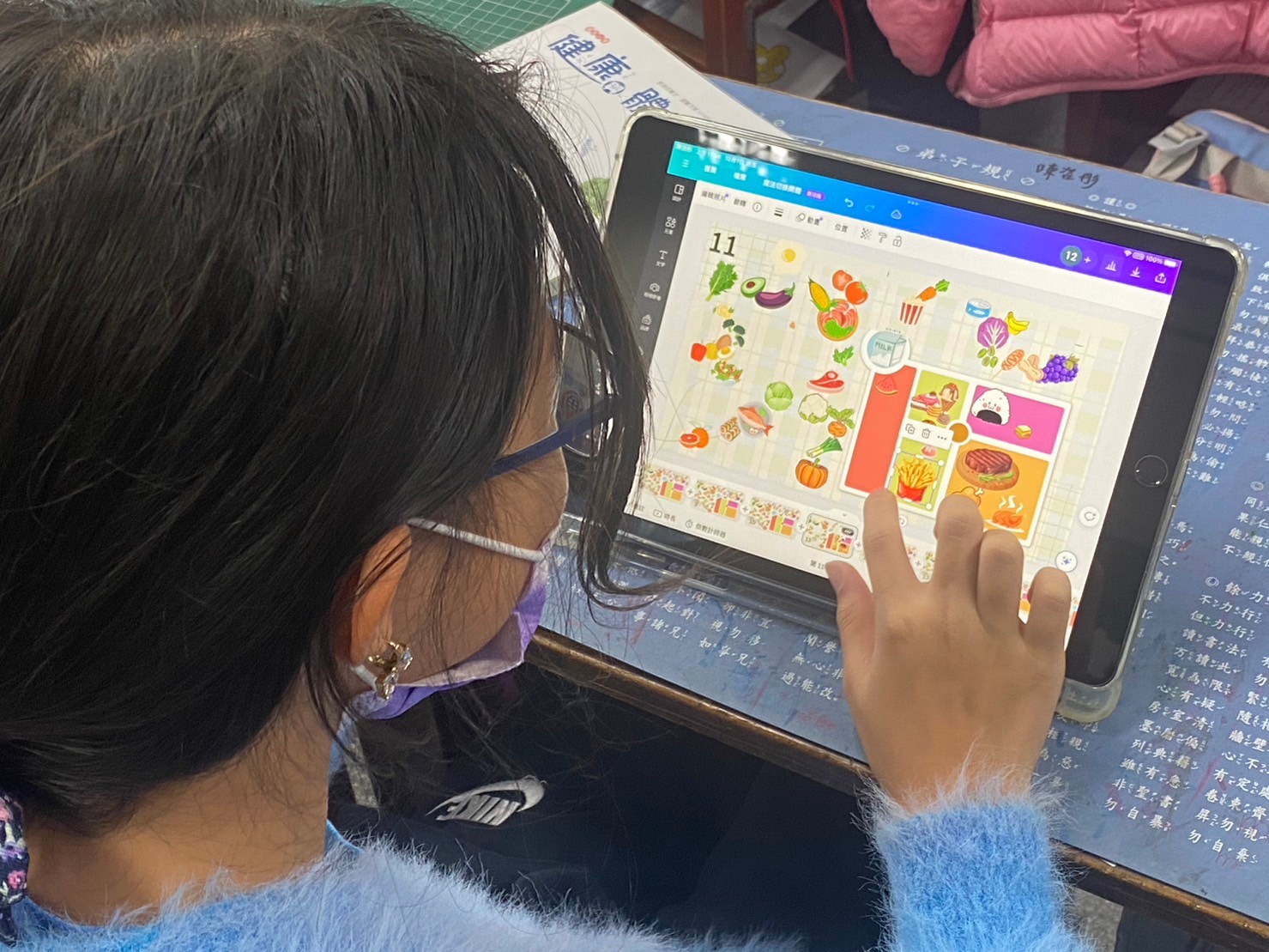 該課程充分運用數位學習工具,讓學生能夠在自主學習的過程中,主動探索飲食健康知識。此外,課程也重視學生運用平板的合作與交流,讓學生在學習過程中能夠相互學習、分享。