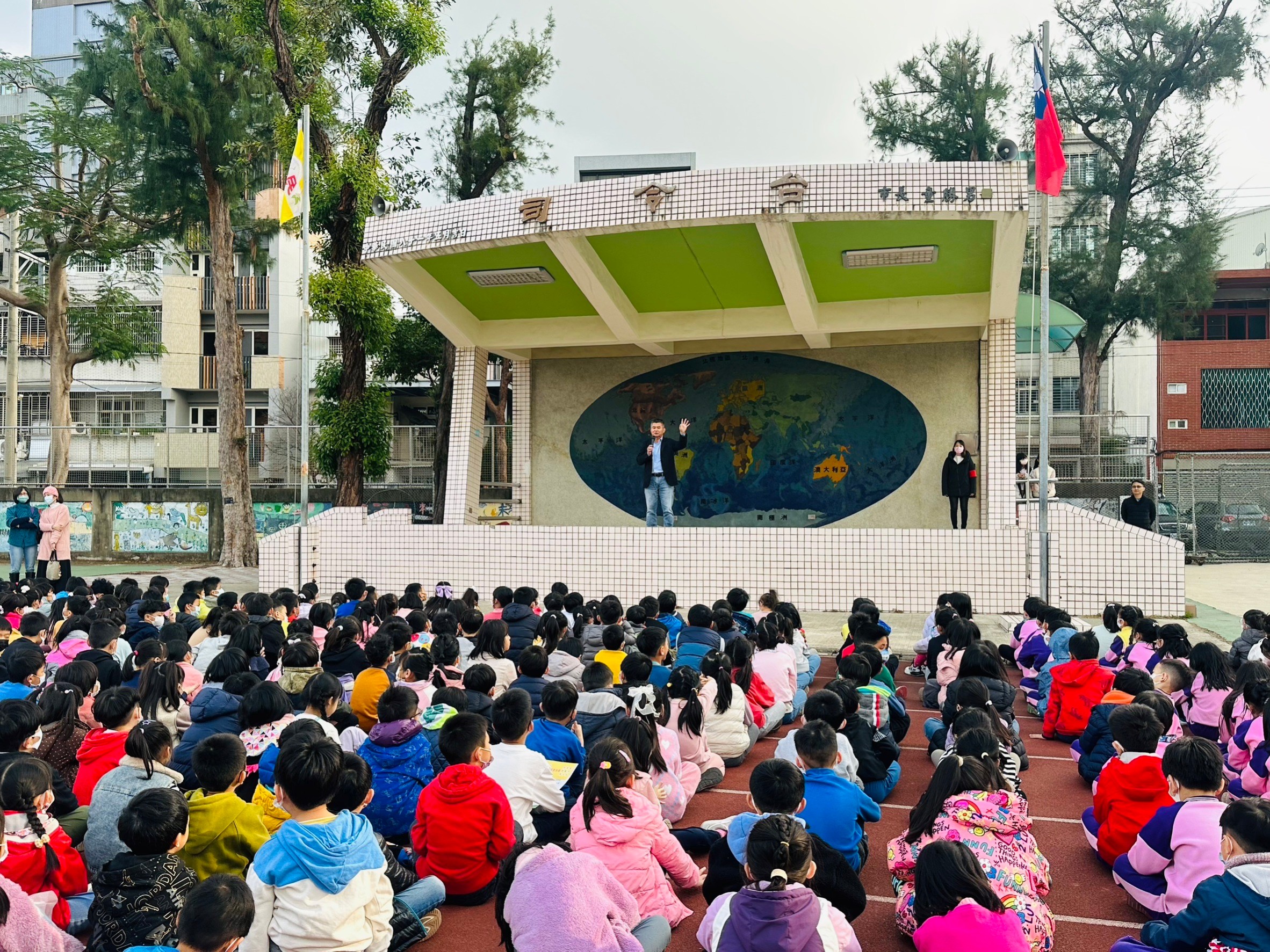 今天是這學期最後一次的低年級學生朝會,進豐校長為小朋友說了一個故事《斷了手指的國王》,勉勵學生遇到困難時,要懂得正向思考,相信一切都是最好的安排。故事具有教育性與感染力,讓孩子們在聆聽故事的過程中,透過故事情節、人物、對話等方式,潛移默化的被影響,當故事情節與自己有相似之處時,就更容易接受故事傳達的價值觀。