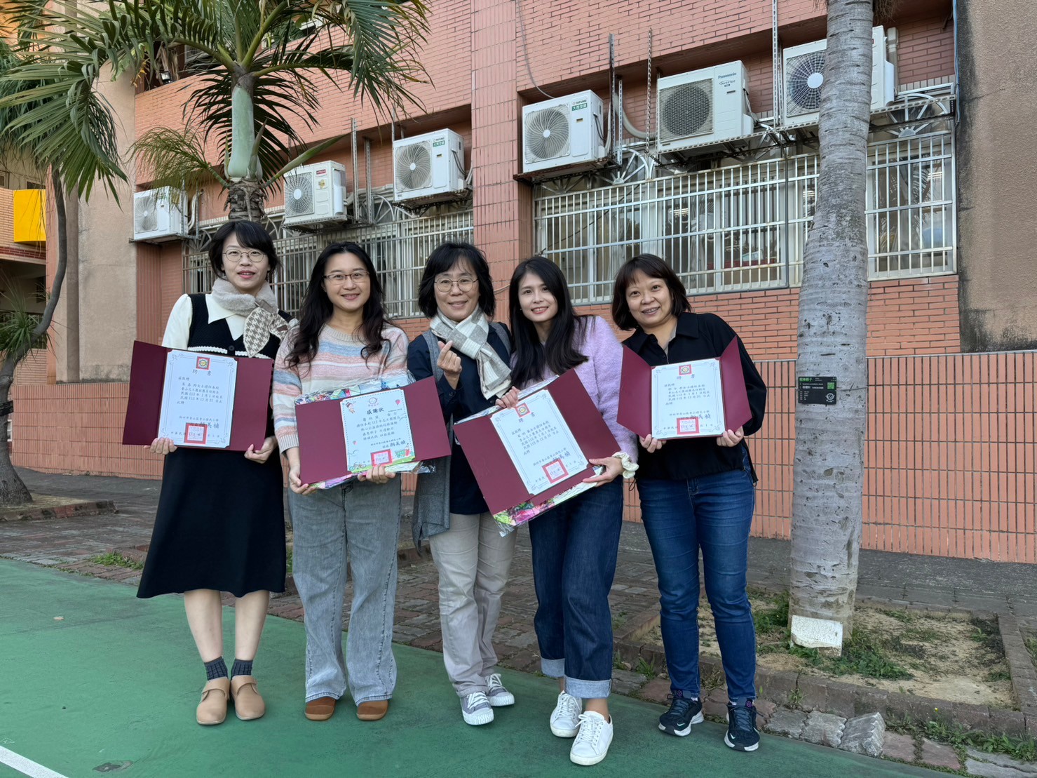今天特地邀請112年的志工團團長-蕭欣宜以及副團長-宋昀蓁、蔡惠明以及113年的志工團團長-宋昀蓁以及副團長-郭令君、朱嘉羚到校,由顏校長親自頒發感謝狀與聘書,象徵著志工團的愛與努力將會延續下去,繼續為香山國小的每一位師生服務!