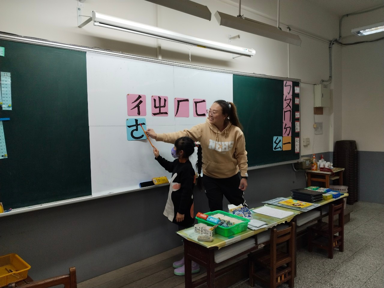 在ㄅㄆㄇ數位學習營的第二節課中,佩珊老師以國語首冊為教材,引領學生學習注音拼音。課堂中,孩子們跟著老師唸讀課文,隨後進行第一課注音符號的複習。佩珊老師巧妙地利用大字磁鐵在黑板上呈現注音符號,並帶領孩子們進行唸讀、認識、拼音的活動。透過學習單的使用,提升學生對注音的書寫技巧,使課程更為豐富深入。