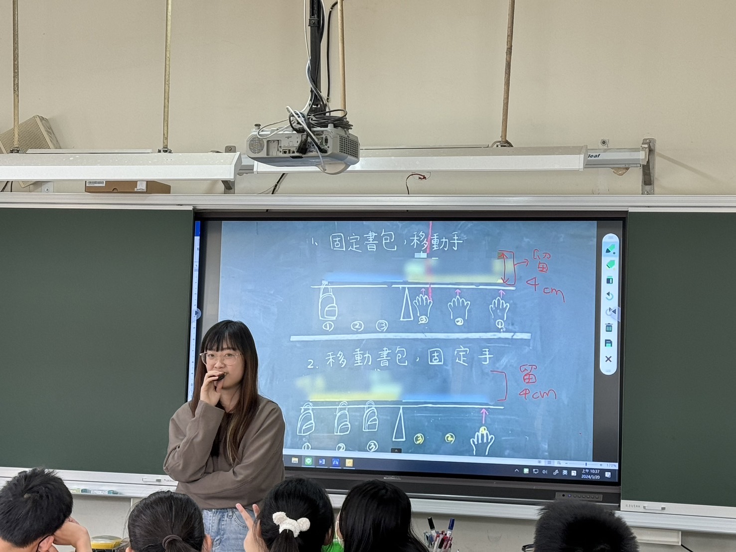 教學課堂上,老師將觸屏融入於課程,學生不僅能看到更清楚的畫面,老師也能及時觸控及回饋,減少到電腦桌前移動滑鼠的時間。未來期望搭配數位軟體融入教學,讓學生能在學習上體驗數位學習,吸收更多知識。