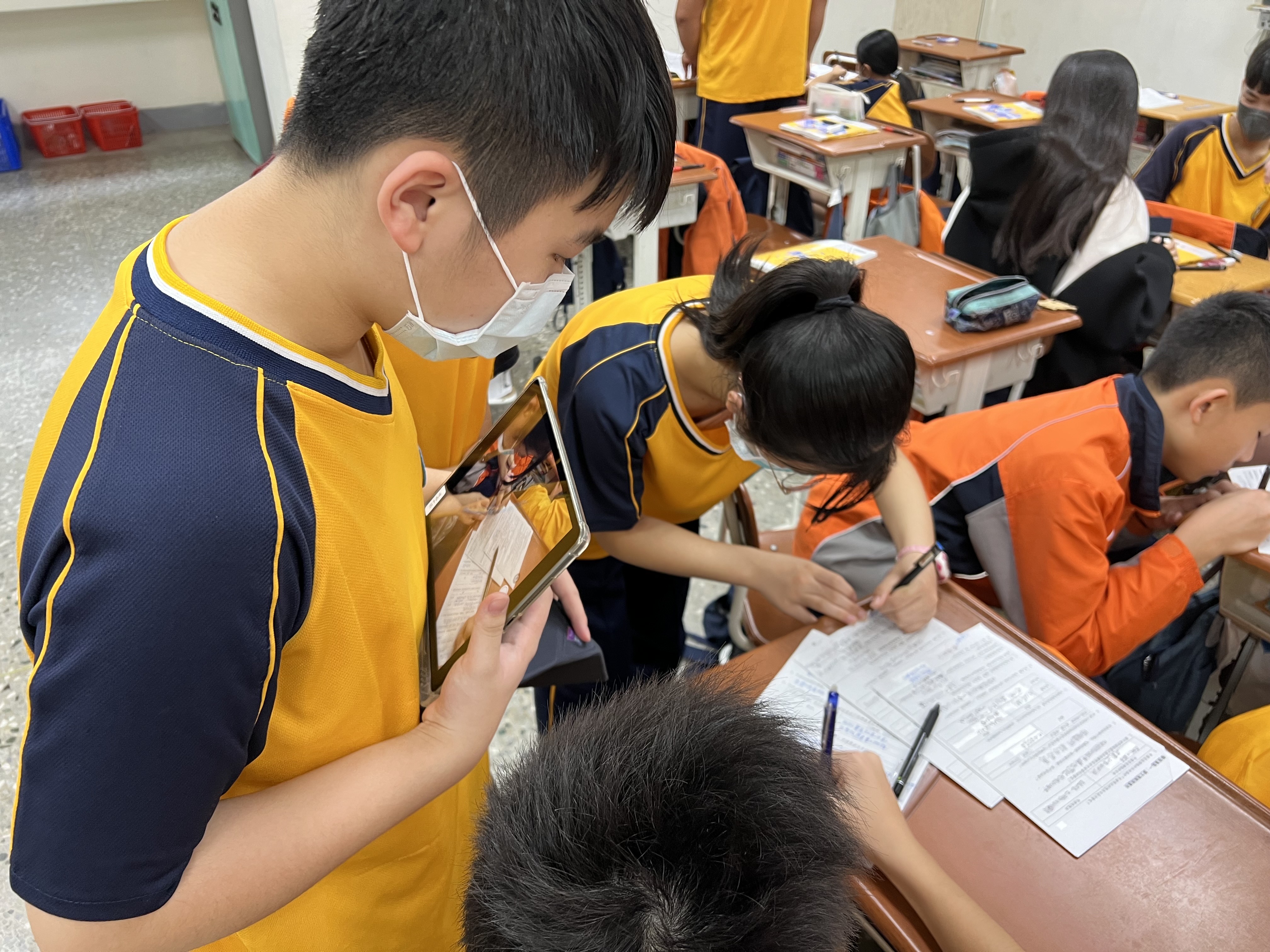 本次課程為《謝天》文意理解,請學生圈畫關鍵字及書寫段落摘要,完成初步自學;教師導學則依「訊息擷取」等題目確認學生自學情況;發放文意理解講義,針對「統整解釋」與「省思評鑑」等類型提問,各小組在Padlet上發表對於文本內容的看法和想法,此外,在小組討論的過程中,教師可以隨時加入各個討論版面,給予適當的引導和點評。最後教師說明各組互評機制,並請輪流參閱各組答案,並寫下評論,完成組間共學。
