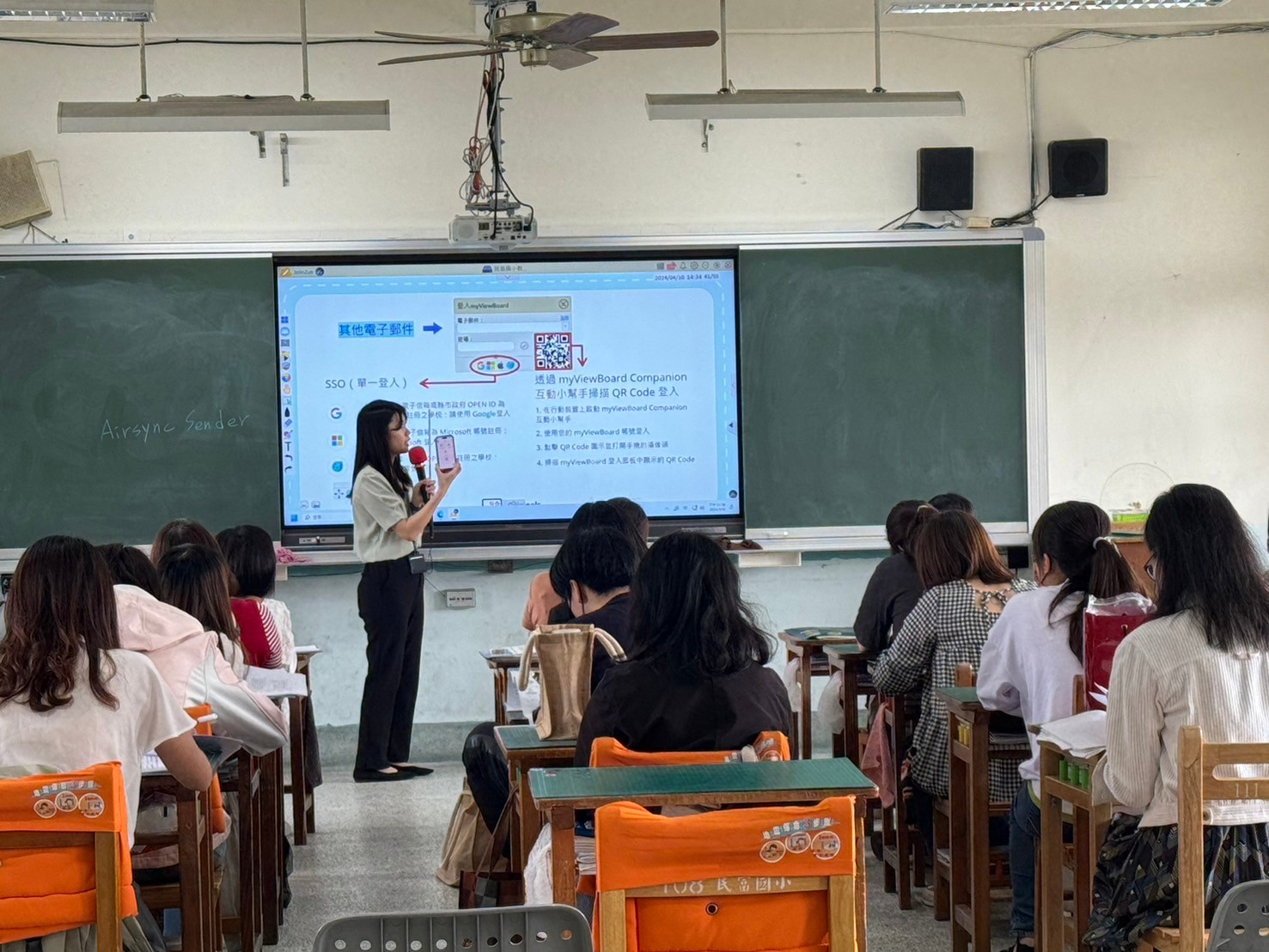 科技設備不斷演進,觸屏設備不該只停留在投影電腦畫面功能,因此學校邀請Viewsonic原廠講師分享教學,從觸屏的基本操作、無線投影小幫手、課堂教學一把罩三大面向進行講解與實作,老師們在訓練過程中獲得了許多啟發,對如何將觸屏技術融入教學有了更深入的理解,提升教學品質。