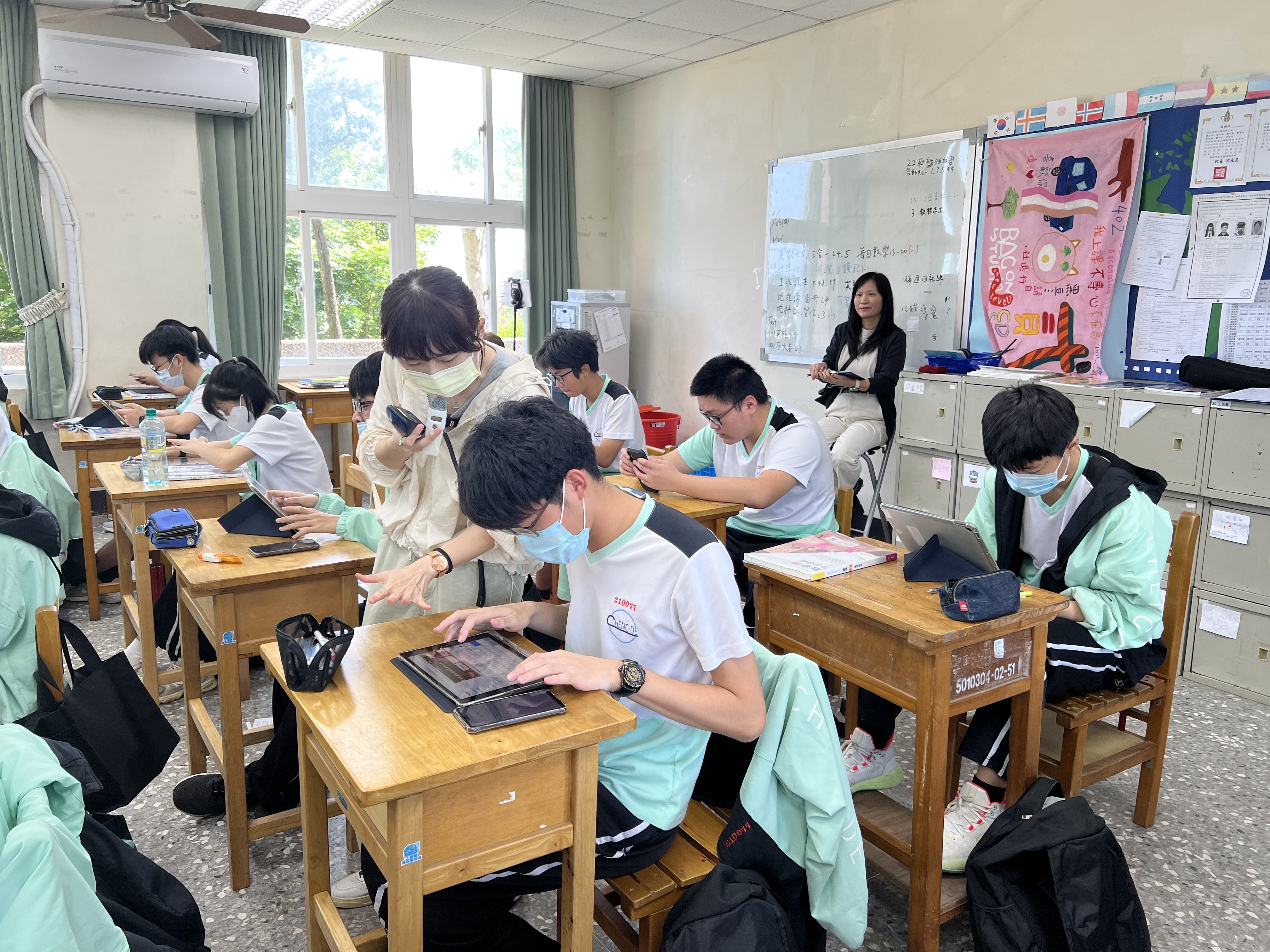 113年4月29日成德高中辦理數位學習精進方案高中部公開觀課,透過計畫網站宣傳(https://dlap.ntust.edu.tw/dlap/),邀請全國有興趣的老師一起線上參與。本年度成德高中公開觀課代表羅筱萱老師設計高一公民與社會-刑法的單元活動,透過教師引導和學習單的設計,學生們雙屏(iPad和自己的手機)靈活運用,一台查找資料,另一台填寫整理學習單,高效學習,善用科技工具,展現數位時代學生的數位實力。