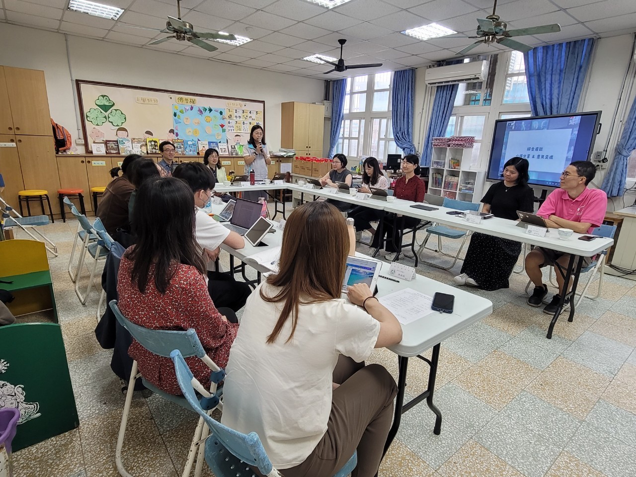 新竹市中小學數位學習精進方案113年中小學實施計畫「入校入班(手把手)陪伴計畫」座談會於5月2日於本校進行,與會嘉賓有台北教育大學數學暨資訊教育學系楊凱翔 教授、教育處教育網路中心賴香君 主任、新科國中 林燕玲校長、青草湖國小 周雯娟校長、內湖國小陳麗雲校長、內湖國小行政團隊、高峰國小溫志帆資訊組長及本校大湖團隊,透過數位科技教學經驗交流、分享並進行陪伴成效探討,領航教師志帆老師說明執行進度內容及數位體驗課程,體會數位科技的運用,提升課堂互動,掌握學習成效。潛力教師婉琳、千鈴及怡宸老師教學心得分享與意見交流,依仁主任運用AI新技術,跨域藝術課程分享,讓與會來賓體驗數位課程,讓人亮眼並且充滿趣味。