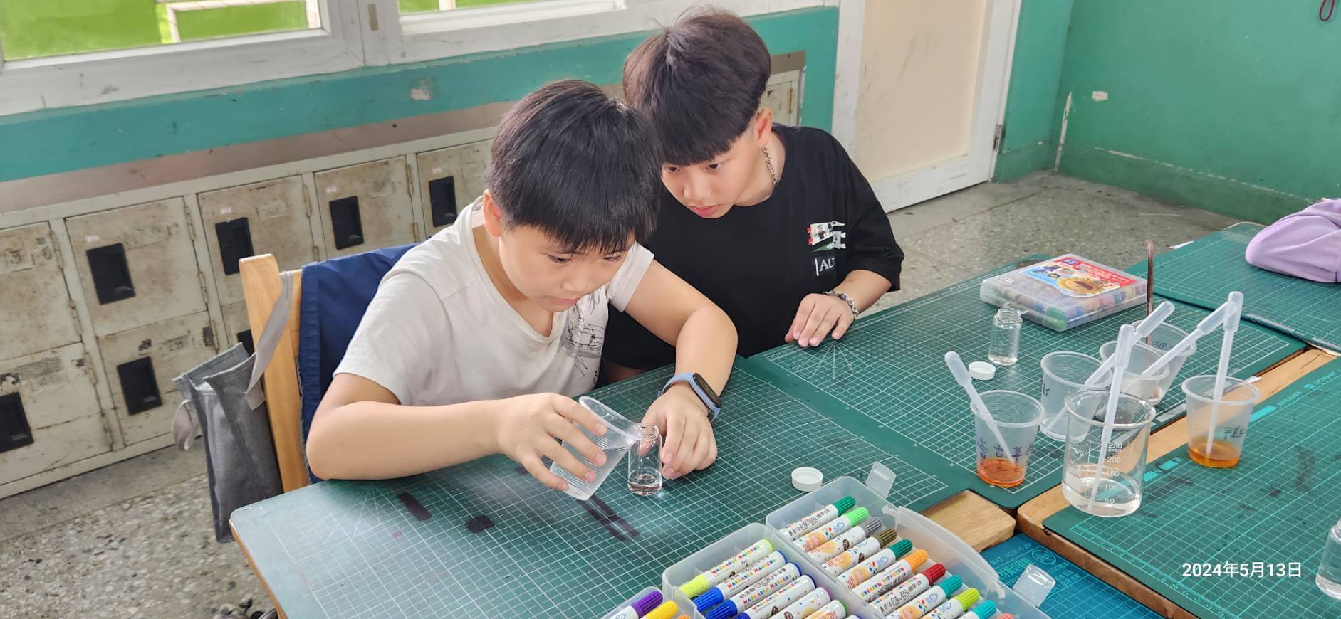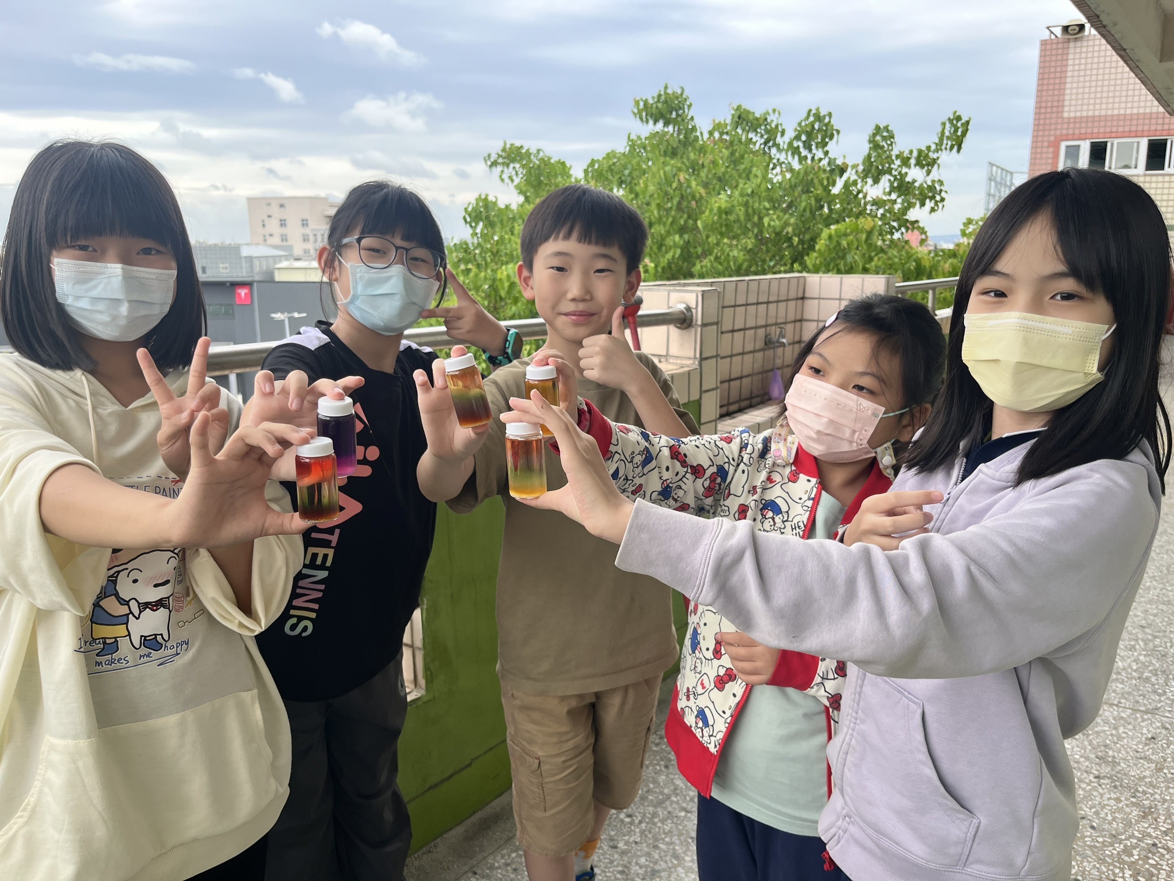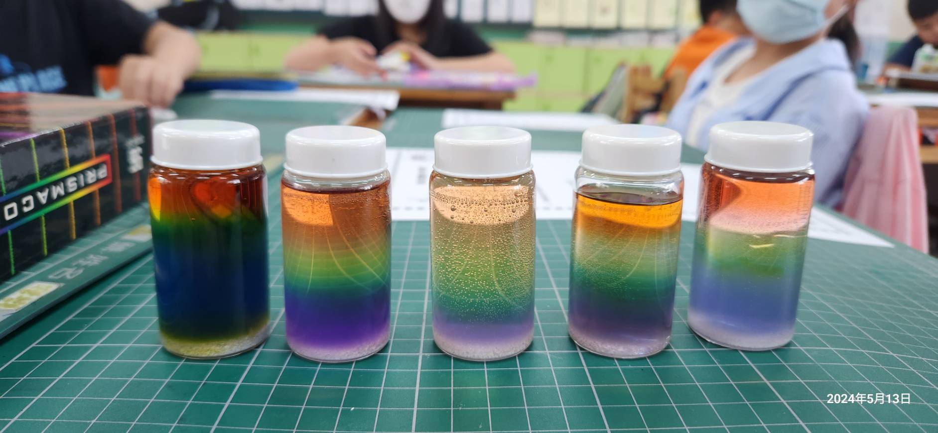 每位學生專注將不同溶液滴入瓶中的神情,看出孩子都期待將自己心中完美的彩虹