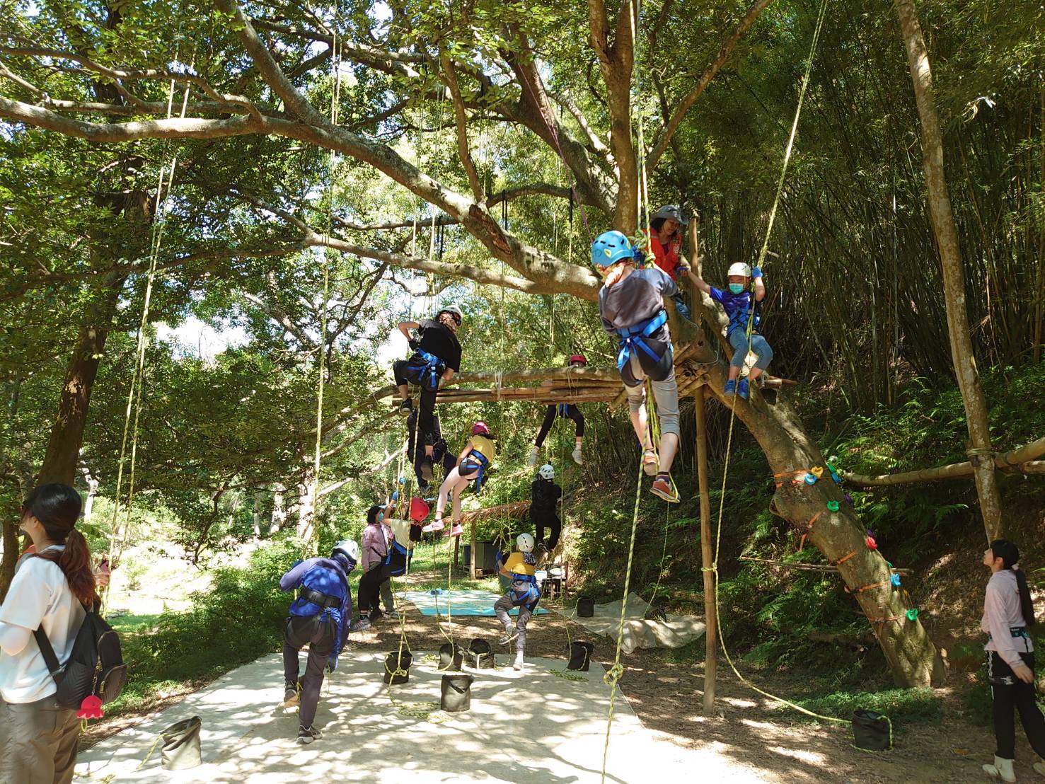 天氣晴 最適合踏青郊遊了! 天雨延期期待已久的青青小森體驗今天成行。一個下午短短3小時,我們進行攀樹體驗,走進山林親近自然,感受自然療癒的魅力。挑戰自己利用繩結和技巧來攀樹看看不同的風景吧!有的學生享受著泰山盪來盪去的樂趣,有的上上下下來回好幾趟,技巧與速度越來越純熟。從一開始的緊張卡卡,到後面勇敢挑戰登上樹頂,老師們也替他們開心和讚嘆學習力真好。