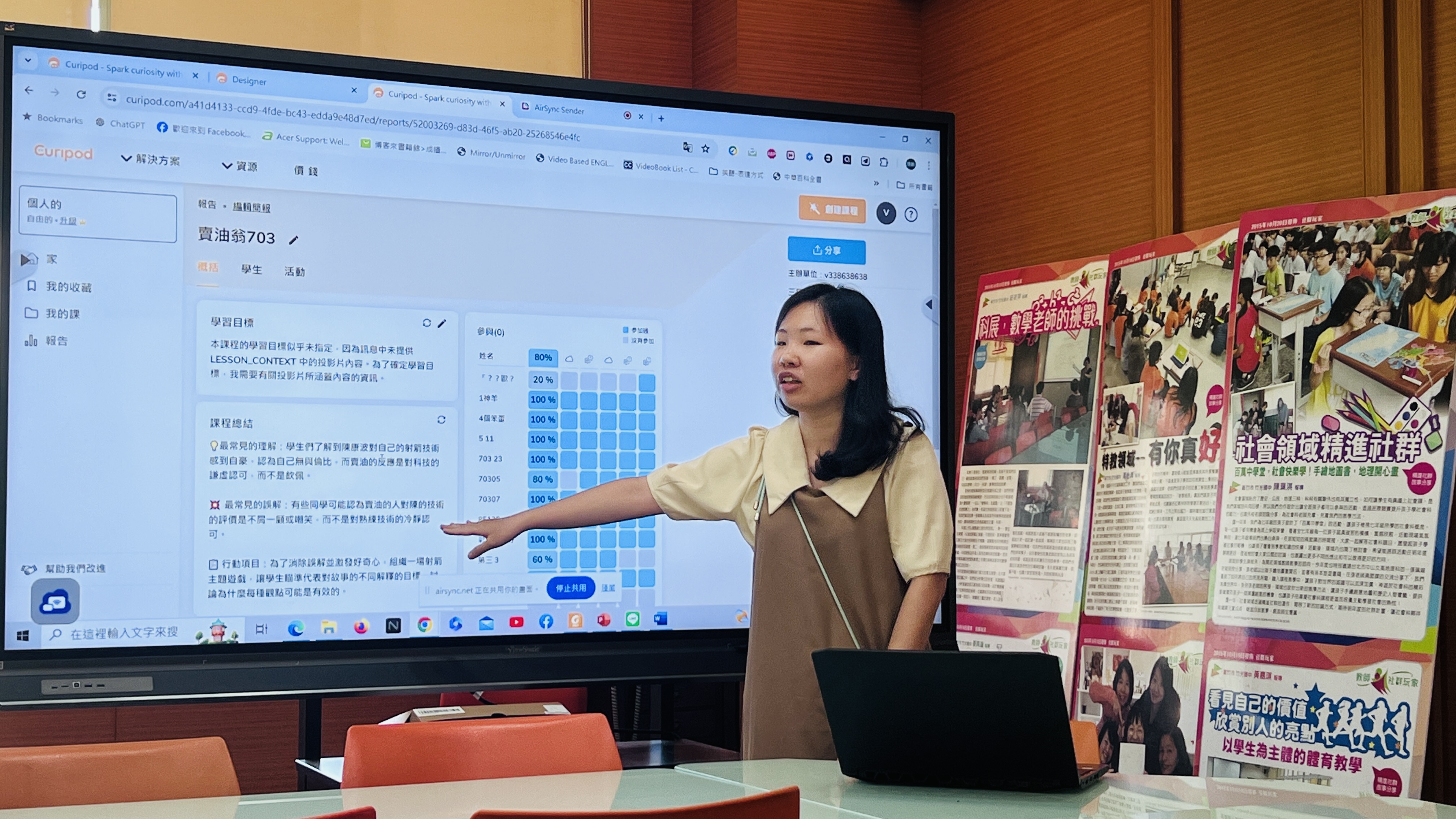劉憶齡老師分享了在「賣油翁」課程中運用Curipod AI的經驗。她強調,Curipod AI在課程紀錄方面的應用,讓教學過程更加流暢且有條理。