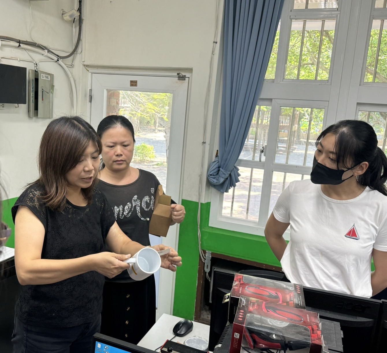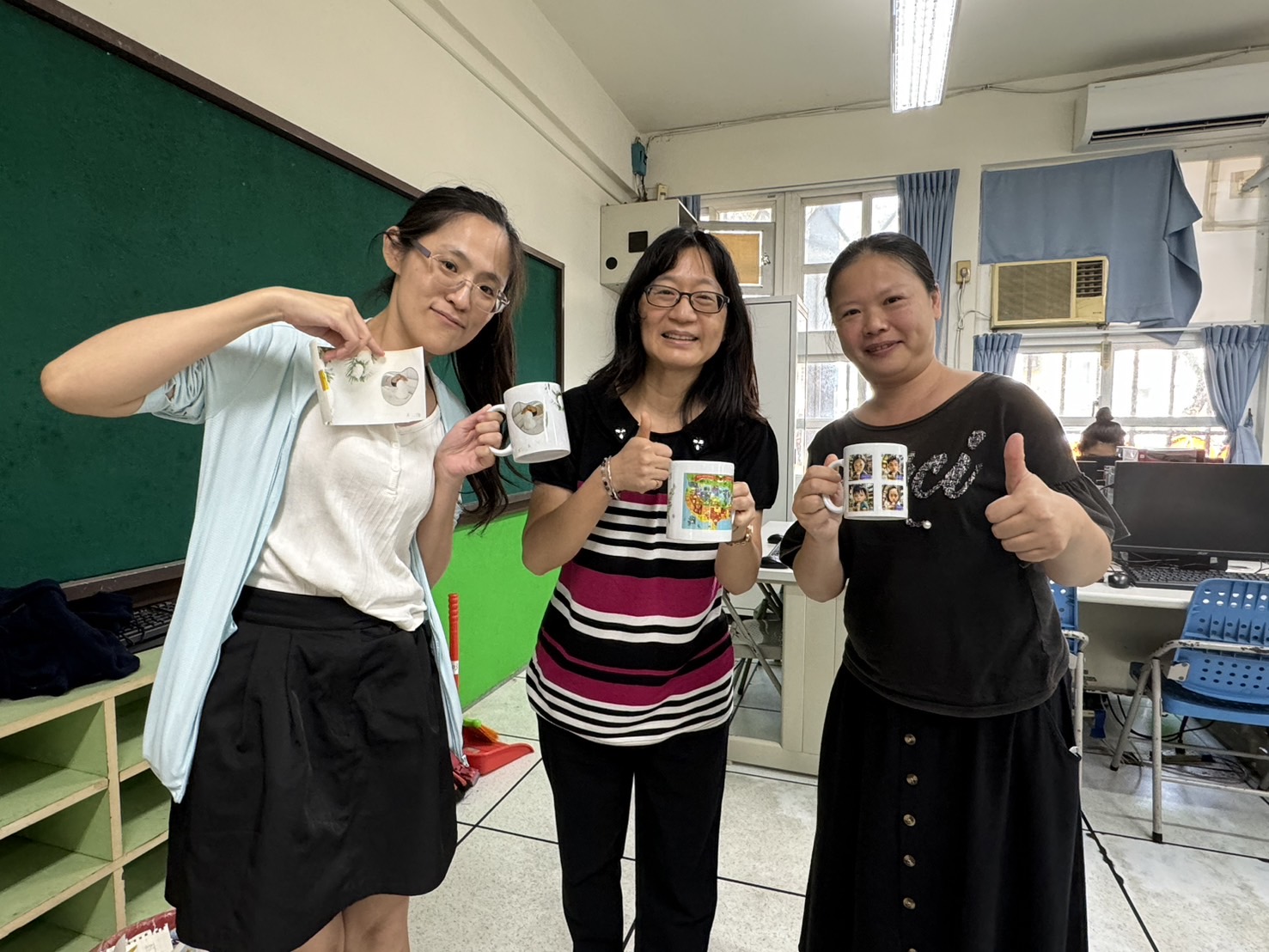 06月19日下午辦理「Canva創意影像設計&馬克杯熱昇華轉印」研習,由培英自造中心組長 楊宛凌帶領馬克杯圖案設計,並利用專門的熱轉印顏料將手繪圖案精緻地翻印到馬克杯上,完成精美馬克杯作品,老師們看到自己作品就像市售商品一般發亮。