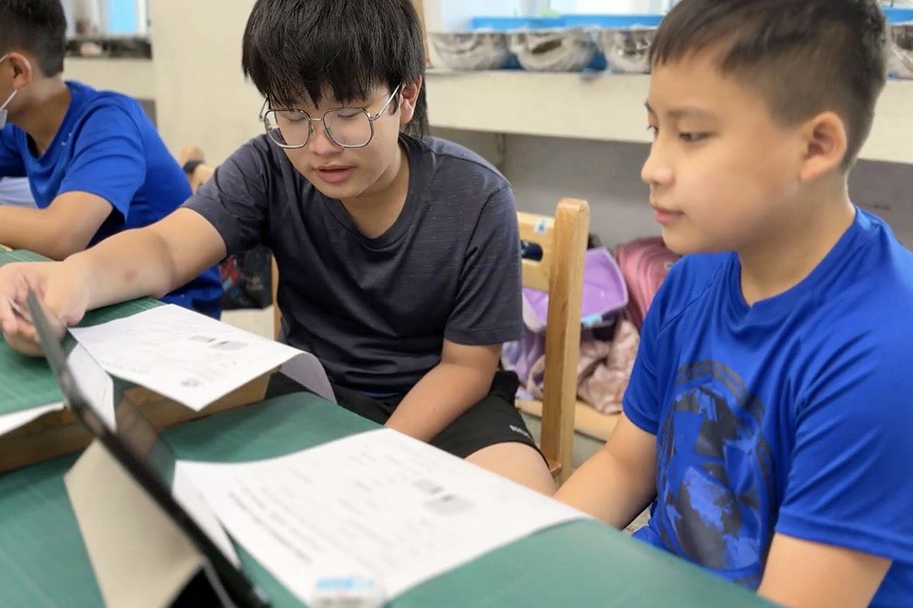 數位學習使用因材網,課堂開始前讓學生做課前預習自學,自主學習成效提升。教師透過平台提供的自學報表,掌握學生學習難點設計課堂活動或任務,以組內共學及組間互學的方式進行實作、討論,過程中適時進行教師導學提醒學生聚焦或澄清學習重點與概念,課堂運作學會如何學習的方法。因材網提供了「人人皆學、處處能學、時時可學」的個人化學習系統,讓孩子的學習之路走得快樂又長久。