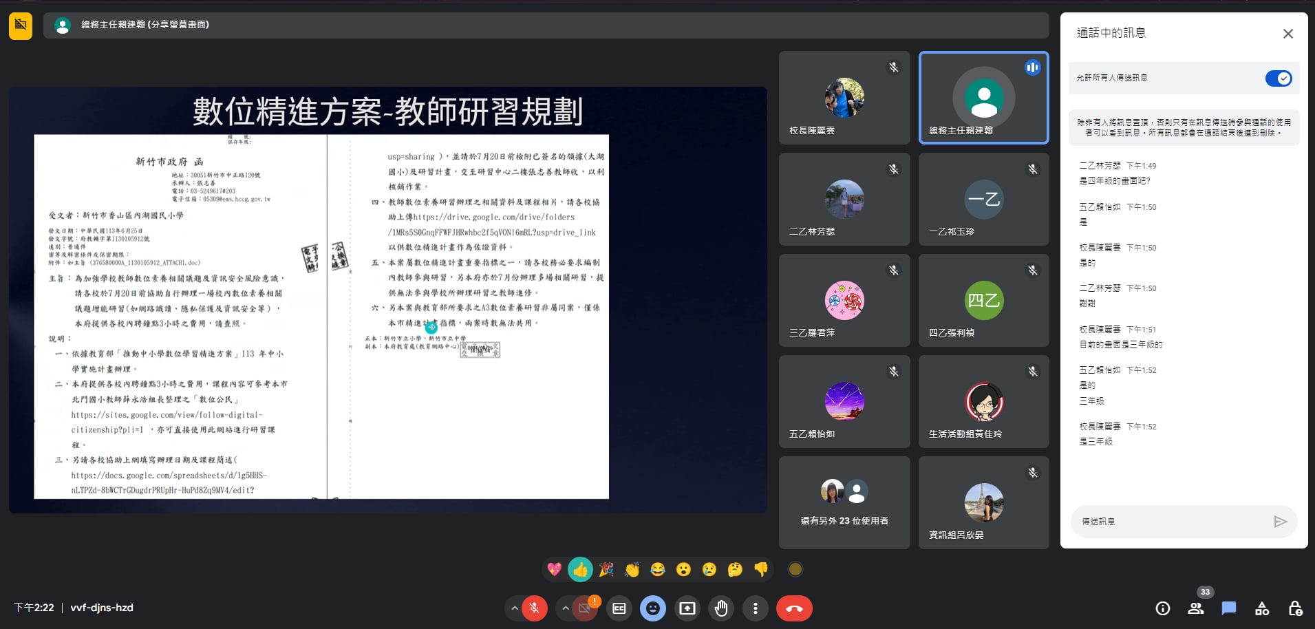 新竹市內湖國小於2024年7月4日成功舉辦「113年度數位素養議題教師增能研習」,此次活動依據新竹市政府補助計畫,旨在提升教職員對資通安全及數位素養的認知與能力。活動Google Meet線上進行。