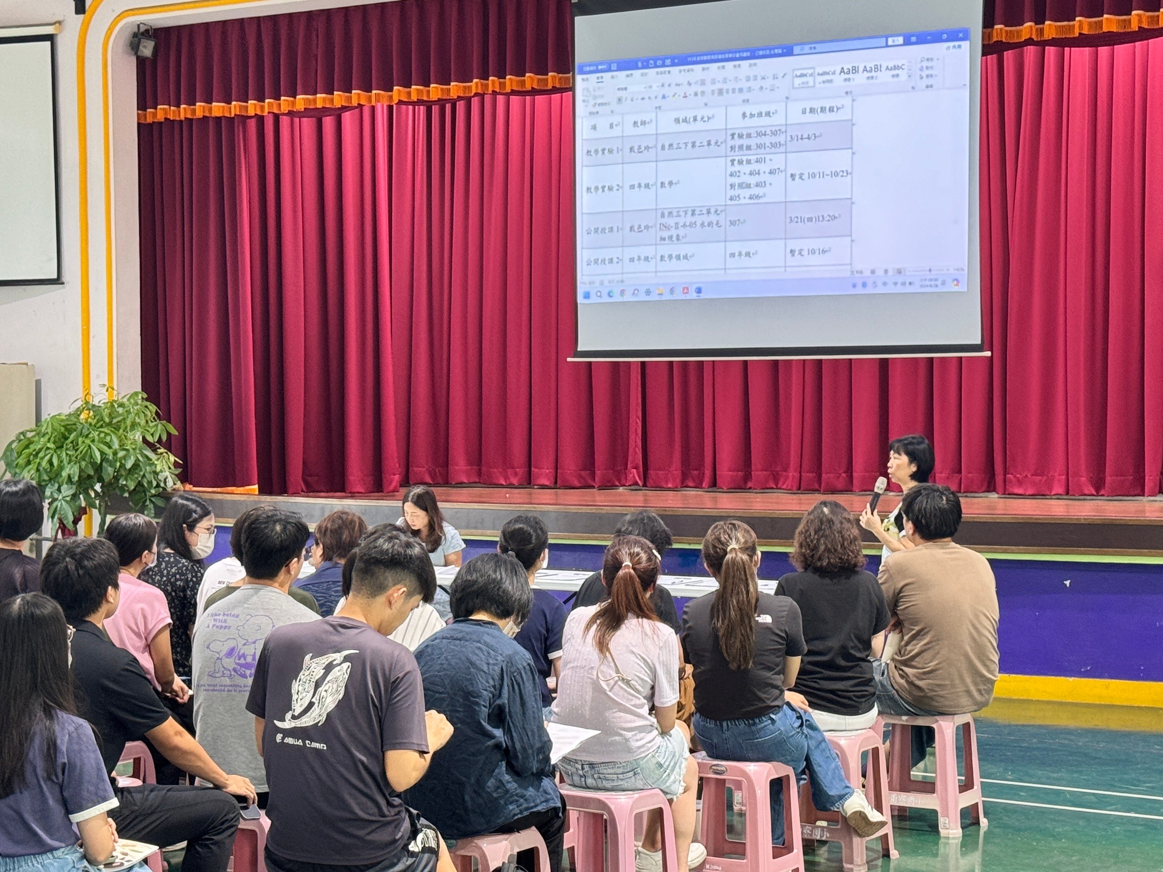接著,由教務主任說明數位學習精進方案與適性教學計畫的執行規劃,包括各學年數位學習平台與工具導入教學的作法、社群運作模式與公開授課安排。