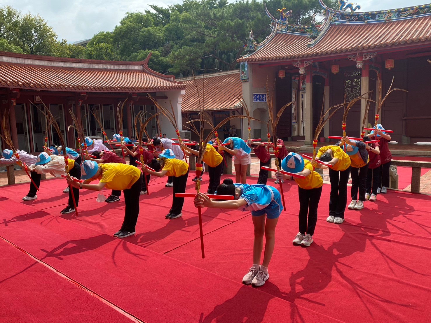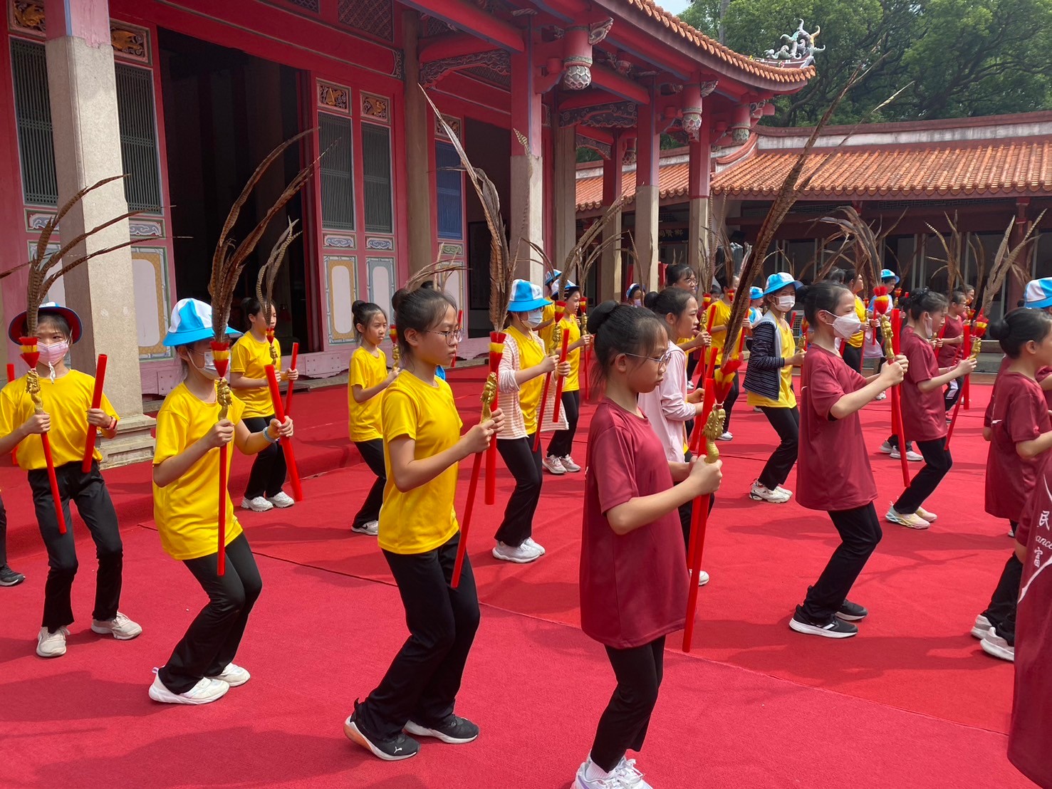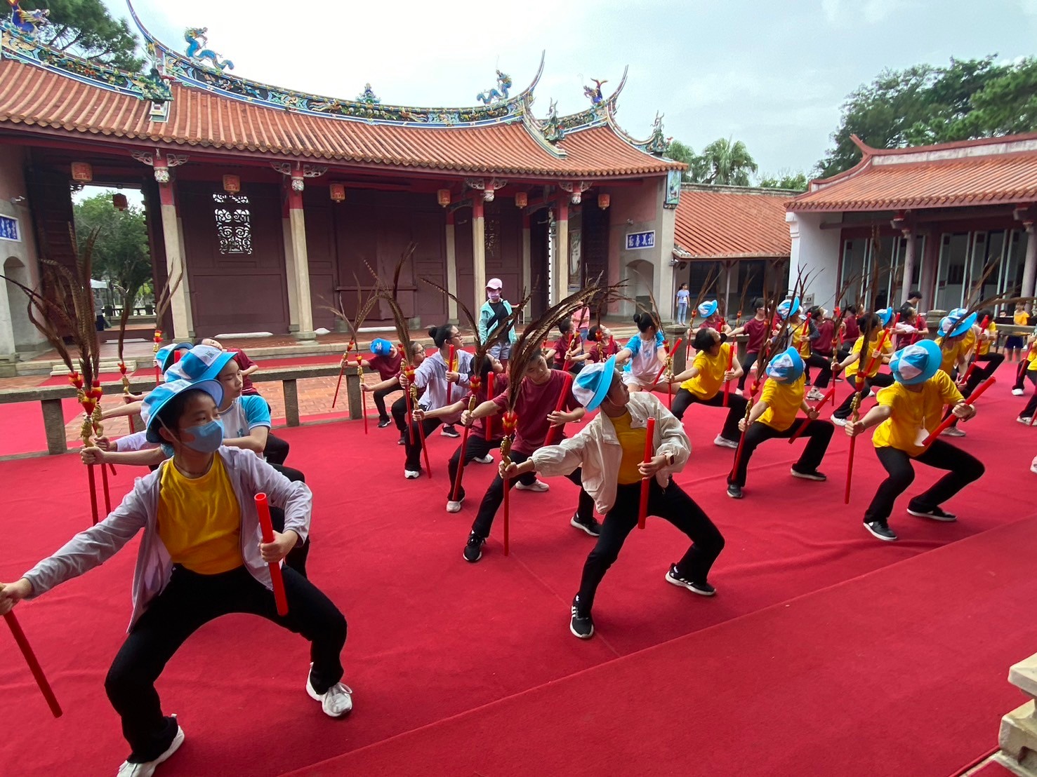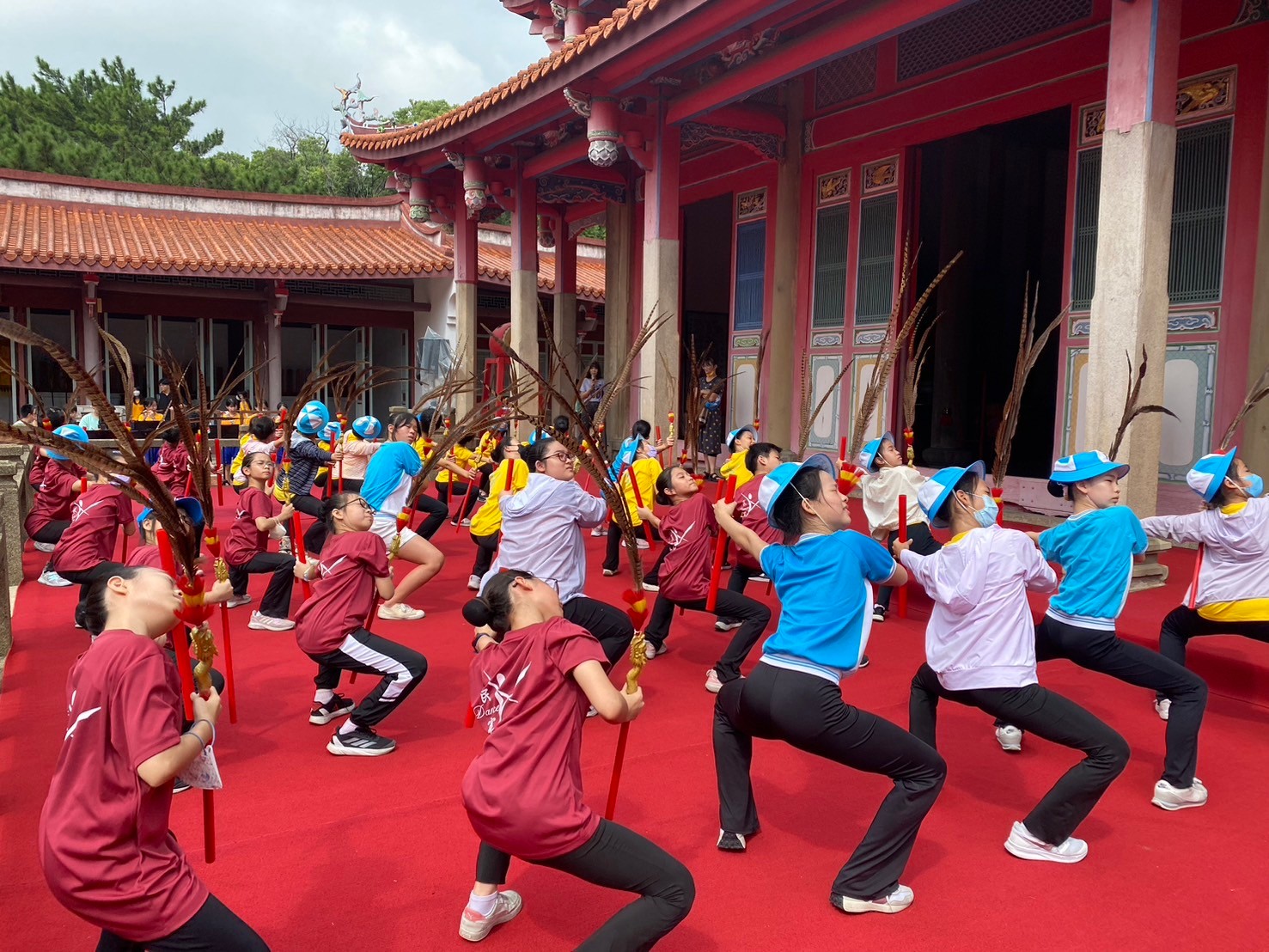 從暑假開始,舞蹈班就積極進行佾舞的練習,今天特地到孔廟進行彩排,期待教師節當天可以有順利的佾舞展示。