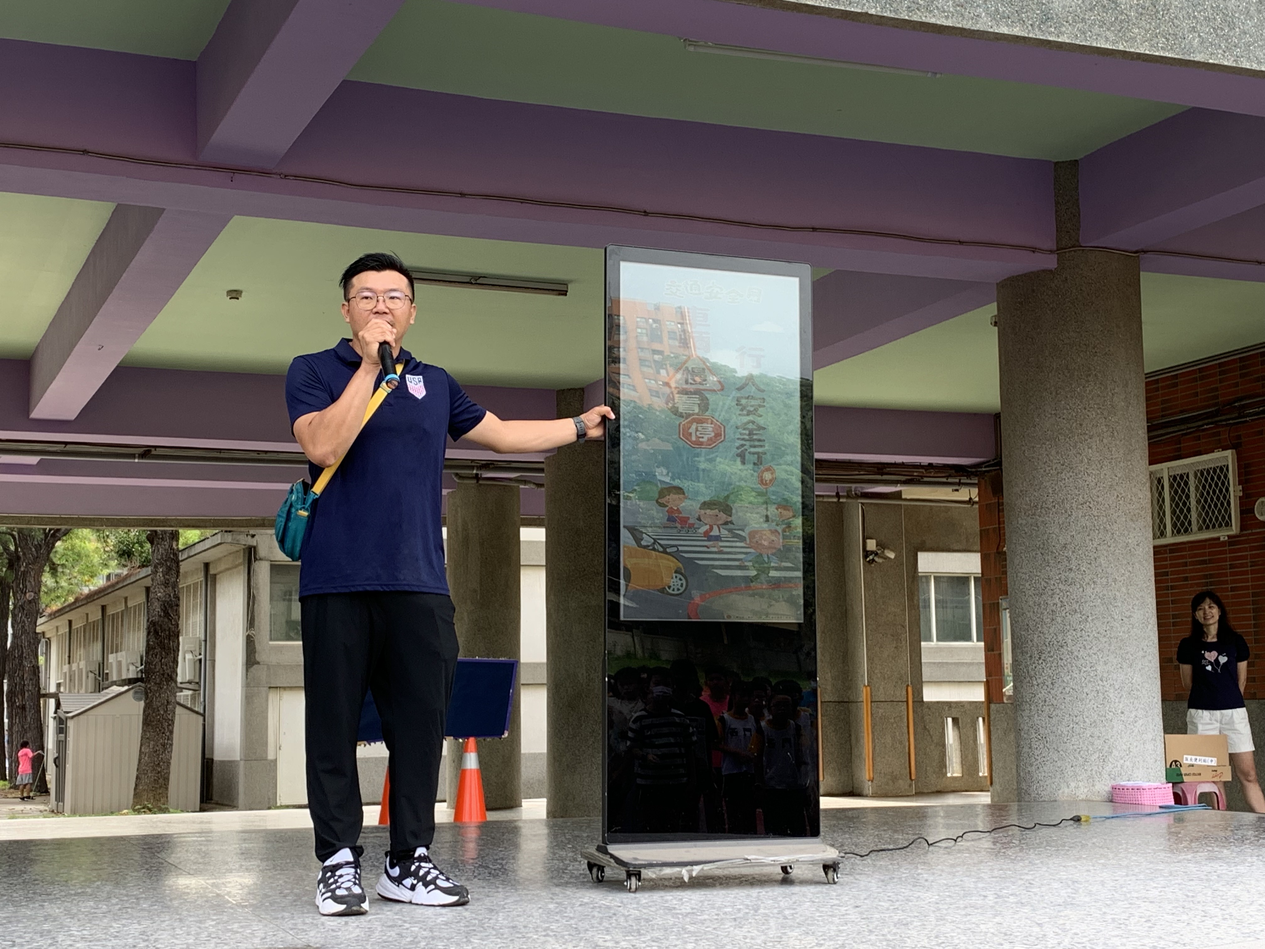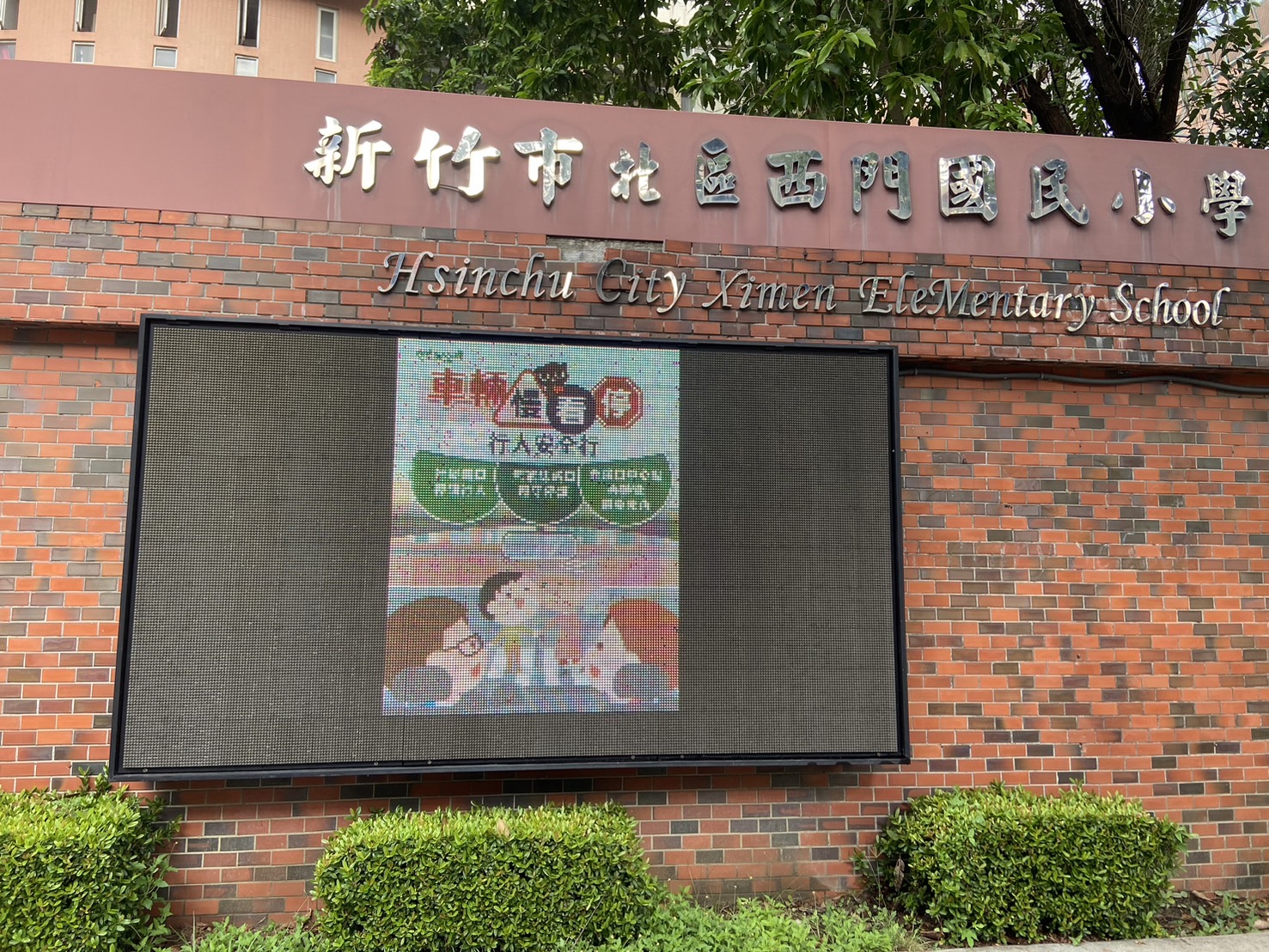 每年9月都是交通安全月,這是宣導的主題是「車輛慢看停,行人安全行」。9/26全校朝會期間,由校長與學務處一起與全校孩子們宣導交通安全的重要性。提醒學生們過馬路一定要遵守停、看、聽等原則。同時在班親會與學校正校門的LED電視牆上也會有交通安全的宣導。也在班親會與校網上公告學校附近科技執法的時段與路段,讓西門好兒童重視交通安全。