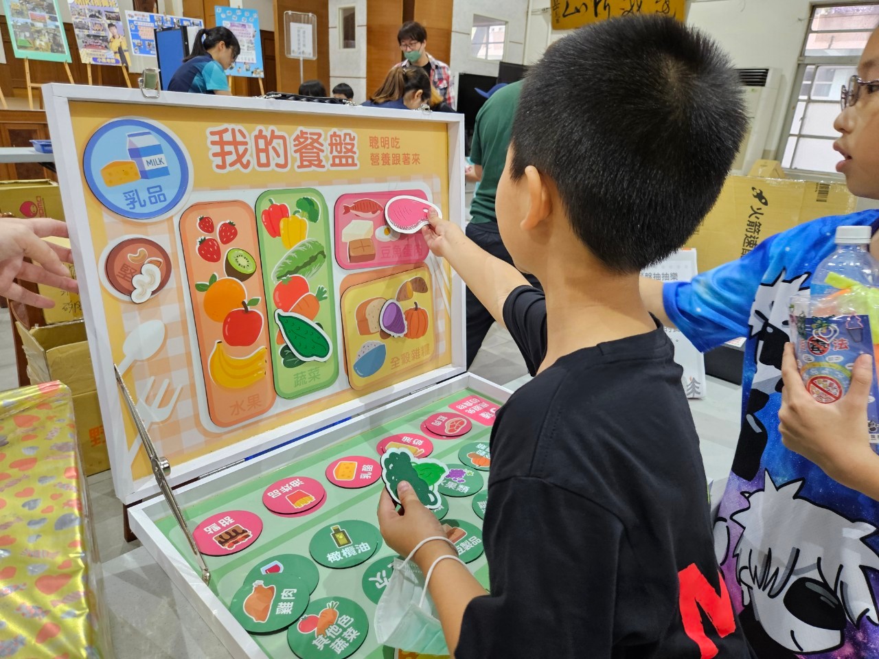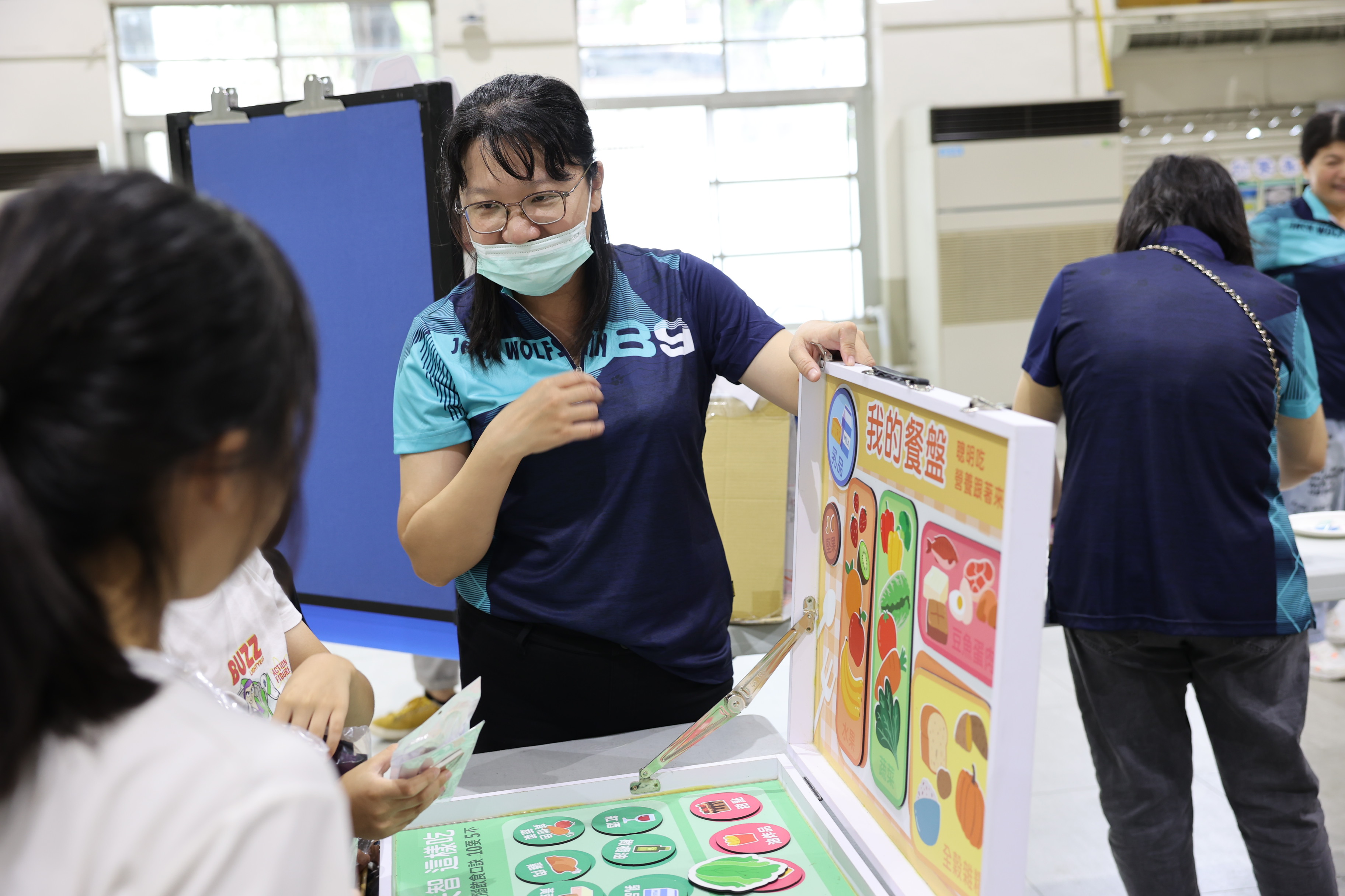在闖關攤位上,學生將依序抽取食物卡片,並根據「我的餐盤」的指引將食物分類至正確的食物組別,例如將蔬菜、豬肉、白飯等食物放置到對應的區域。這項活動不僅考驗學生的營養知識,也鼓勵學生透過實踐學習均衡飲食的觀念。參與學生表示,這項活動讓他們在輕鬆有趣的氛圍中了解了日常飲食應如何搭配,並從中學到營養均衡對身體的重要性。