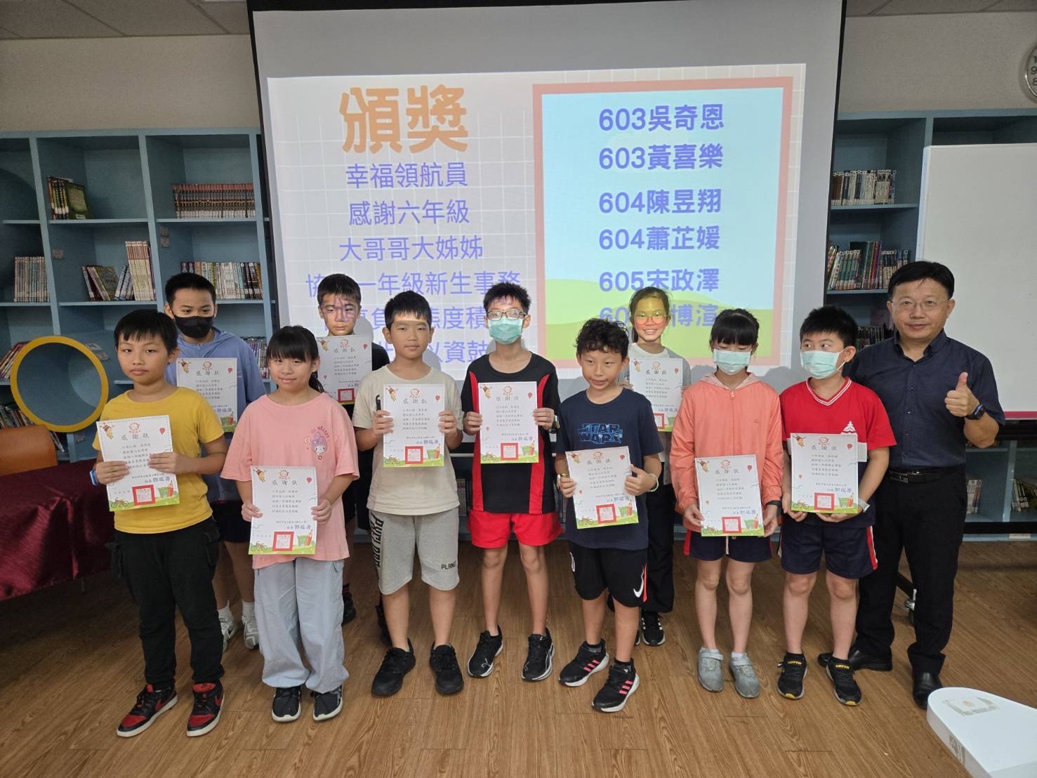 香山國小幸福領航員從8/30迎接小一新生入學後便開啟了為期十週的入班服務,在11/1當天服務活動圓滿落幕了。在開學初六年級的大哥哥與大姊姊自願利用每天的晨間及午休時間耐心指導一年級的學弟學妹們注音符號,陪他們完成訂正;協助午餐及教室清潔的工作;協助導師們有條不紊的完成繁雜的事物,是導師們的強力支援隊。懵懂的小一新生們有了六年級幸福領航員的陪伴,更快適應學校的作息、步上軌道,也因為看著學長姐服務的身影,讓小一新生們也有了學習的楷模。