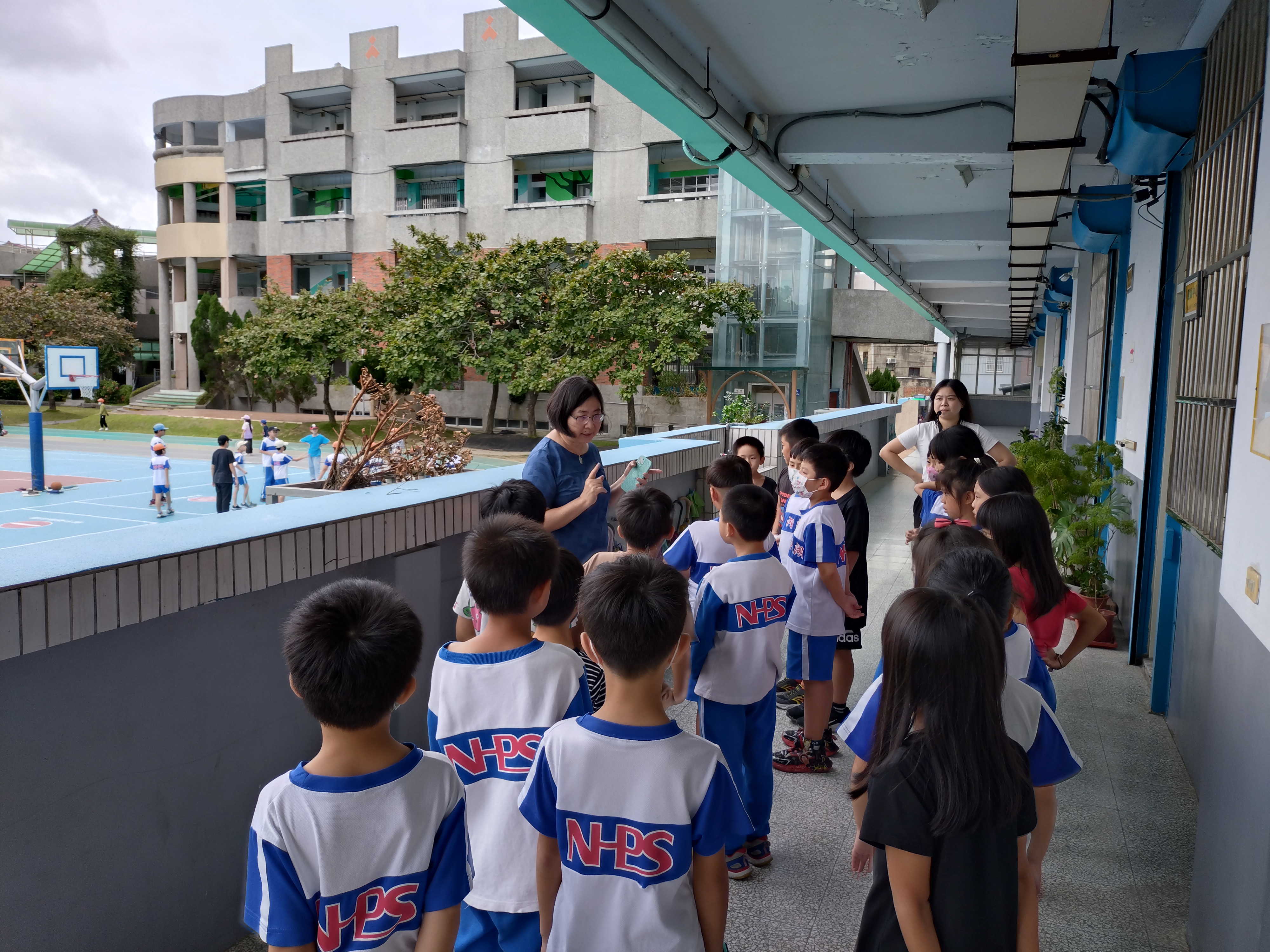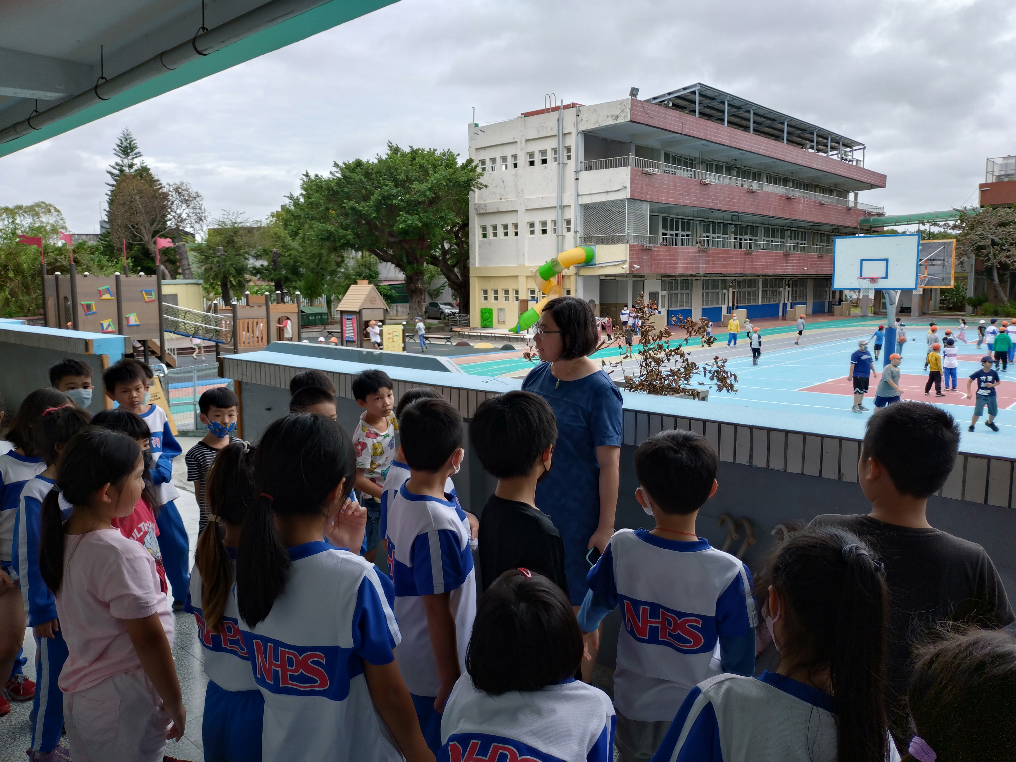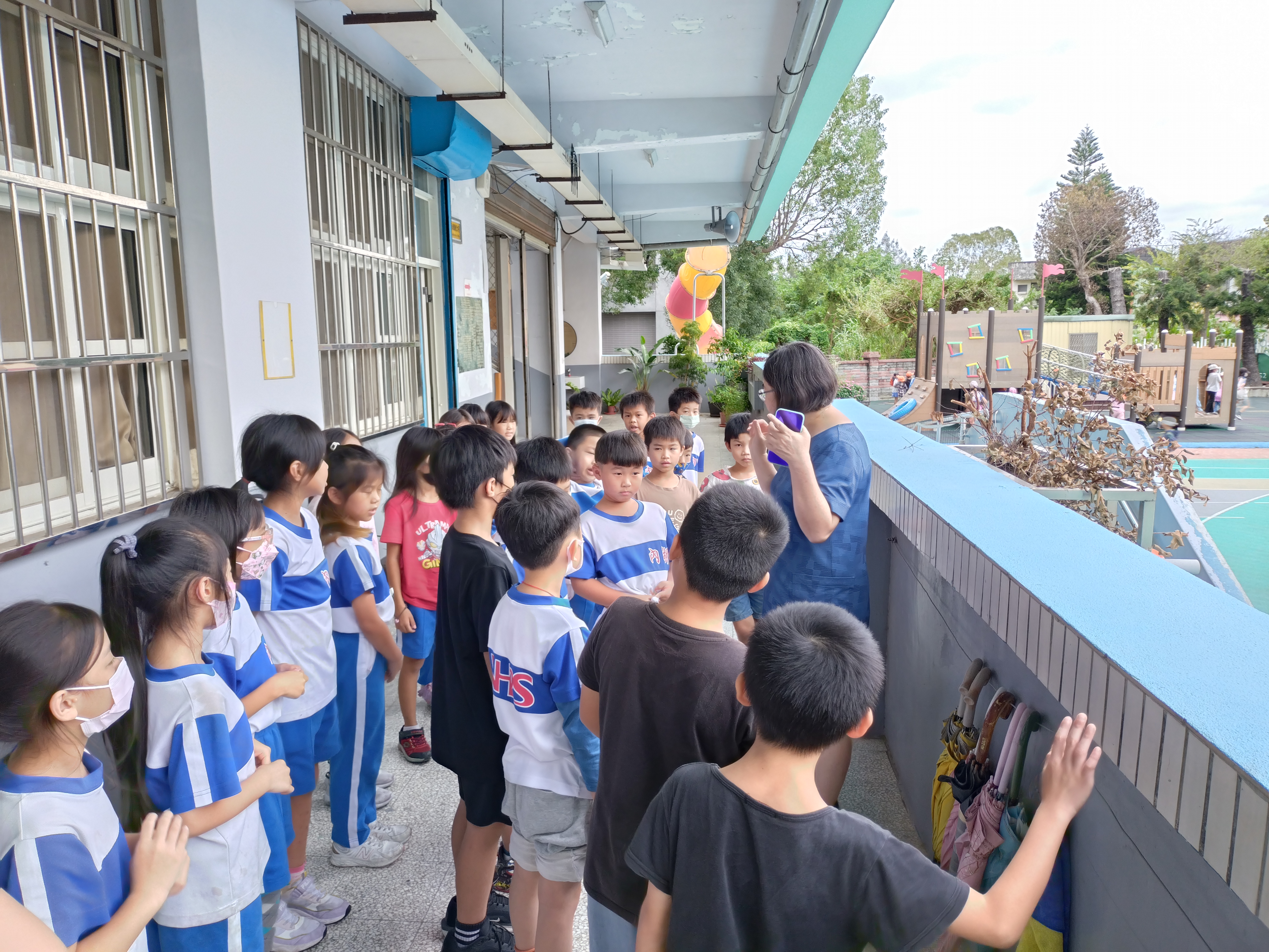 二年級的孩子考完試後,興奮的在下課時間往遊戲器材區衝,一時忘情的在走廊上跑了起來,校長趕緊將大家召集過來講解走廊奔跑之危險,希望大家能遵守規矩。