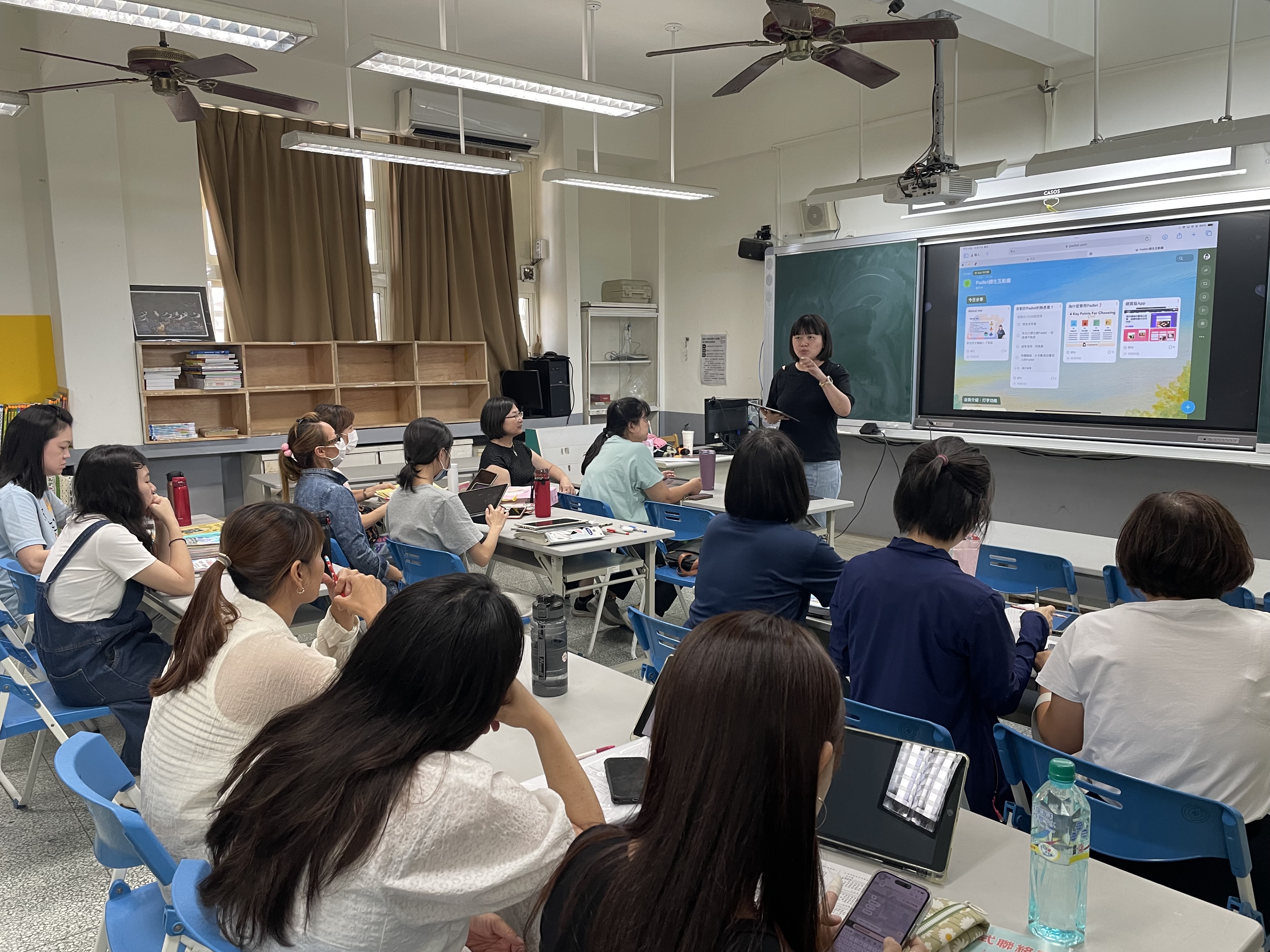 內湖國小邀請到新北市文德國小丁思與老師分享了其在國語文教學中運用數位工具的心得。丁思與老師透過平板、電腦等科技設備,結合互動式遊戲、線上學習平台等多元化的數位資源,能有效提升學生的學習興趣與成效。陳麗雲校長帶領內湖國小老師共同研究數位教學,以期讓學生更主動參與學習,提升國語文能力並培養其資訊素養。