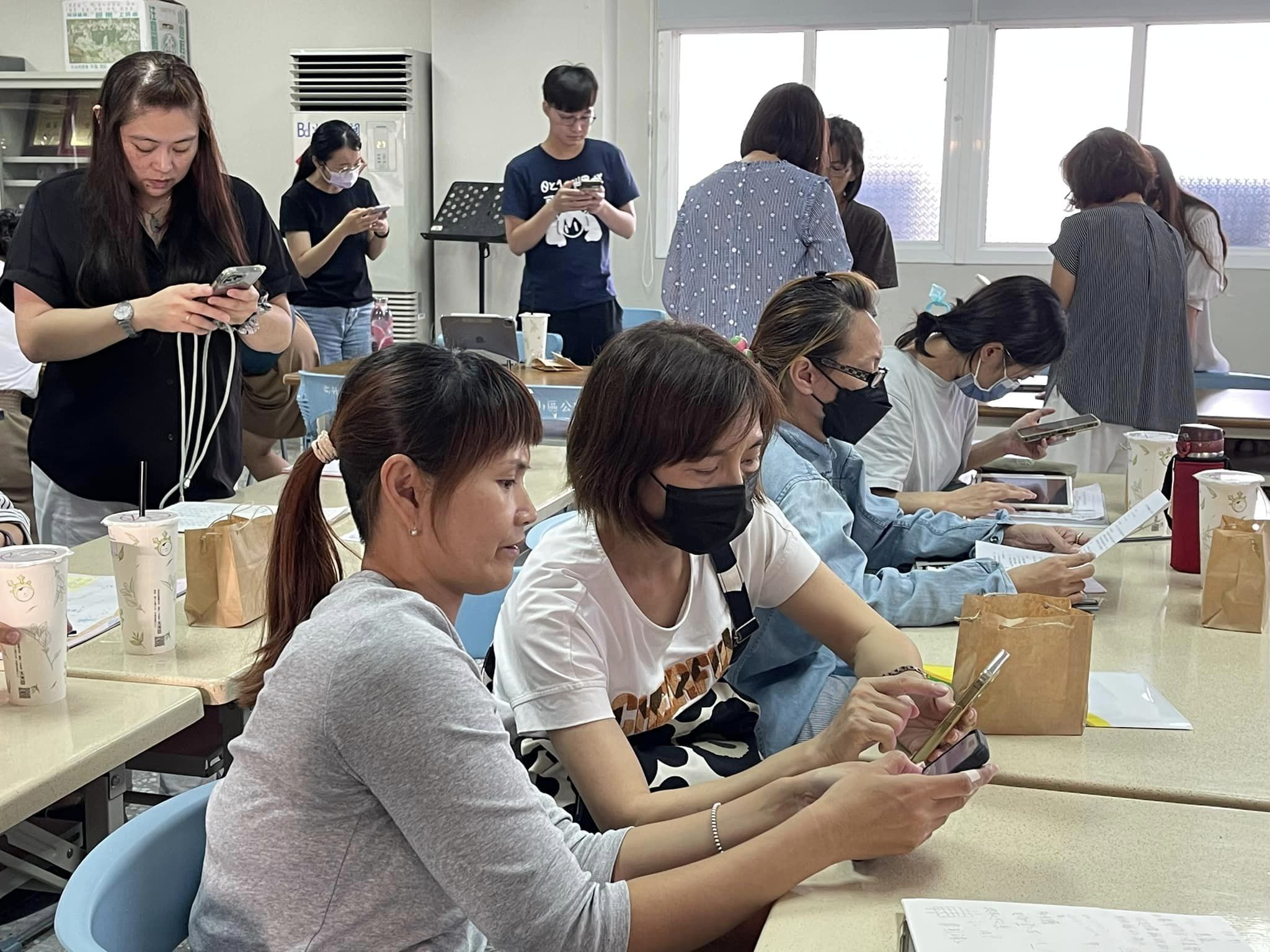 校長則邊聽講,邊設計題目。校長運用竹市校園智慧通的探索智慧通,及時將研習內容入題,好讓參與者在研習之後,得以進入探索以驗收自己的學習成果。