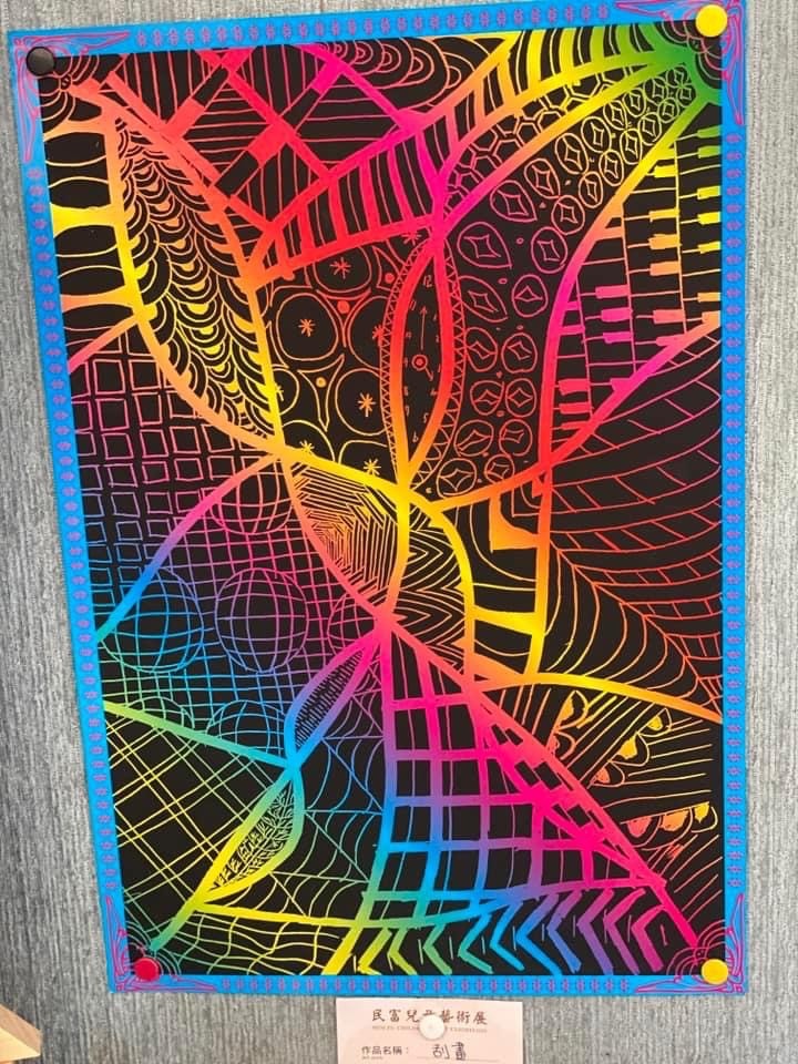 每一件作品都彷彿述說著作者的獨特想法與心情。這些色彩與線條的搭配,無不展現孩子們對藝術的熱情,以及他們在學習過程中的努力與進步。整體展覽充滿了生氣與童趣,同時也展現了刮畫藝術的無限可能。