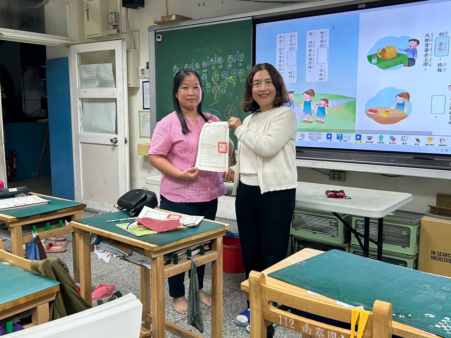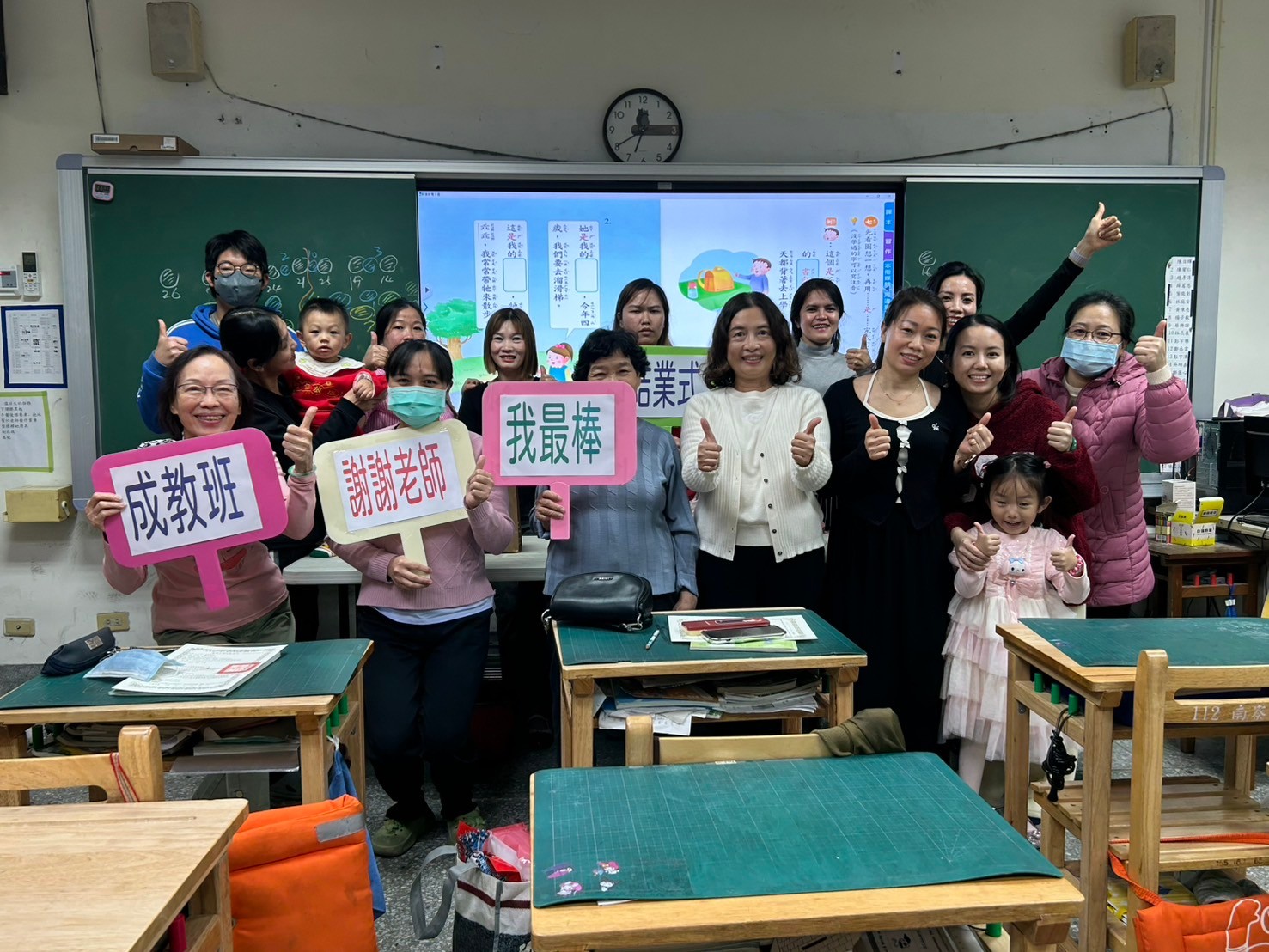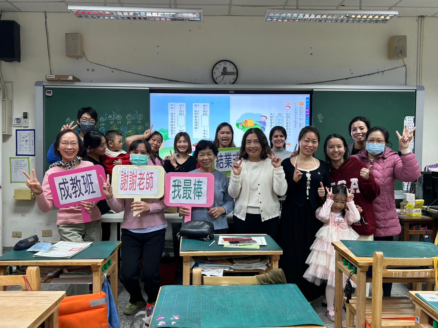 感謝授課的淑貞老師,不辭辛勞地陪伴學員們在晚間學習;感謝教務處麗娟主任,責成且全力支持成教班的成立與正常運作;感謝麗娥校長,能親臨結業式頒發證書,並帶來暖心又喜氣的紅豆湯圓恭賀學員們學習有成!