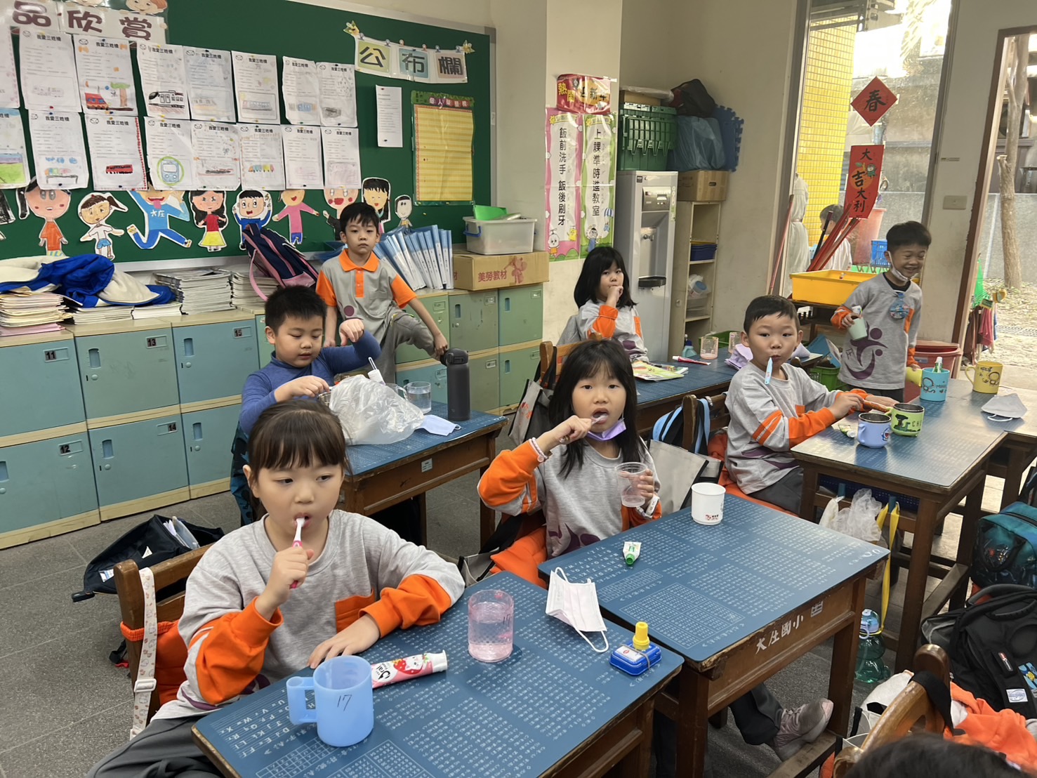 大庄國小學童們個個認真刷牙,落實餐後潔牙的好習慣,為他們的口腔健康打下良好基礎,也展現學校推動口腔衛生教育的顯著成效。