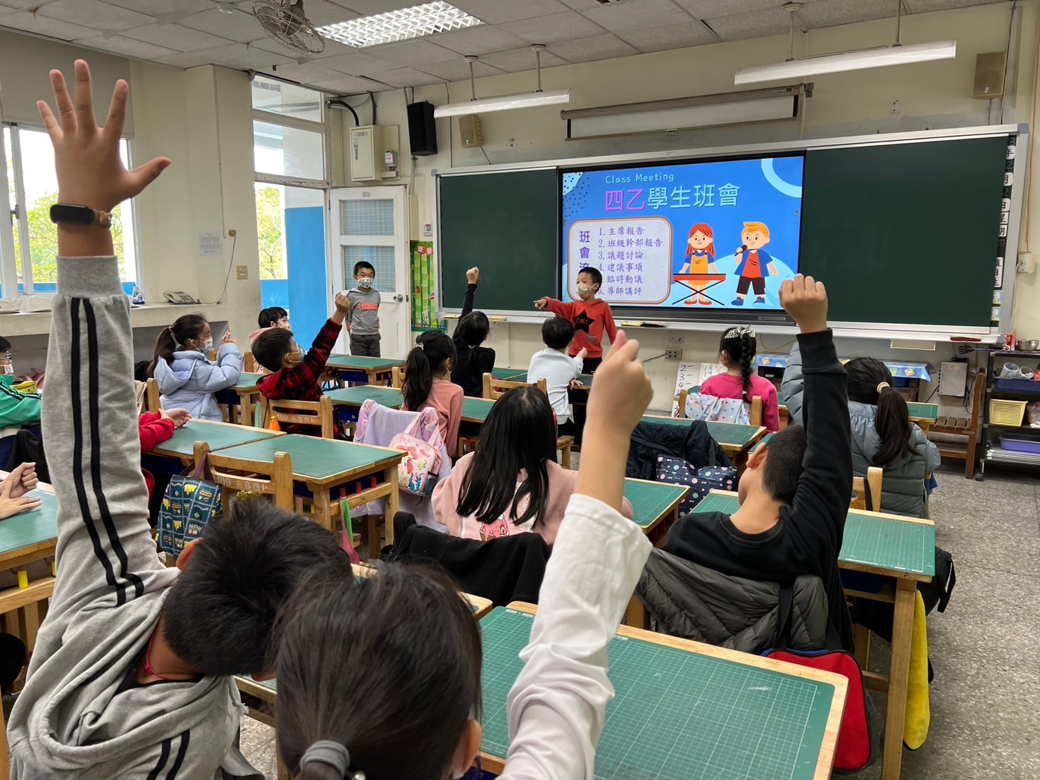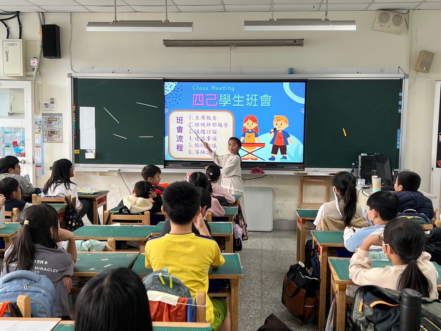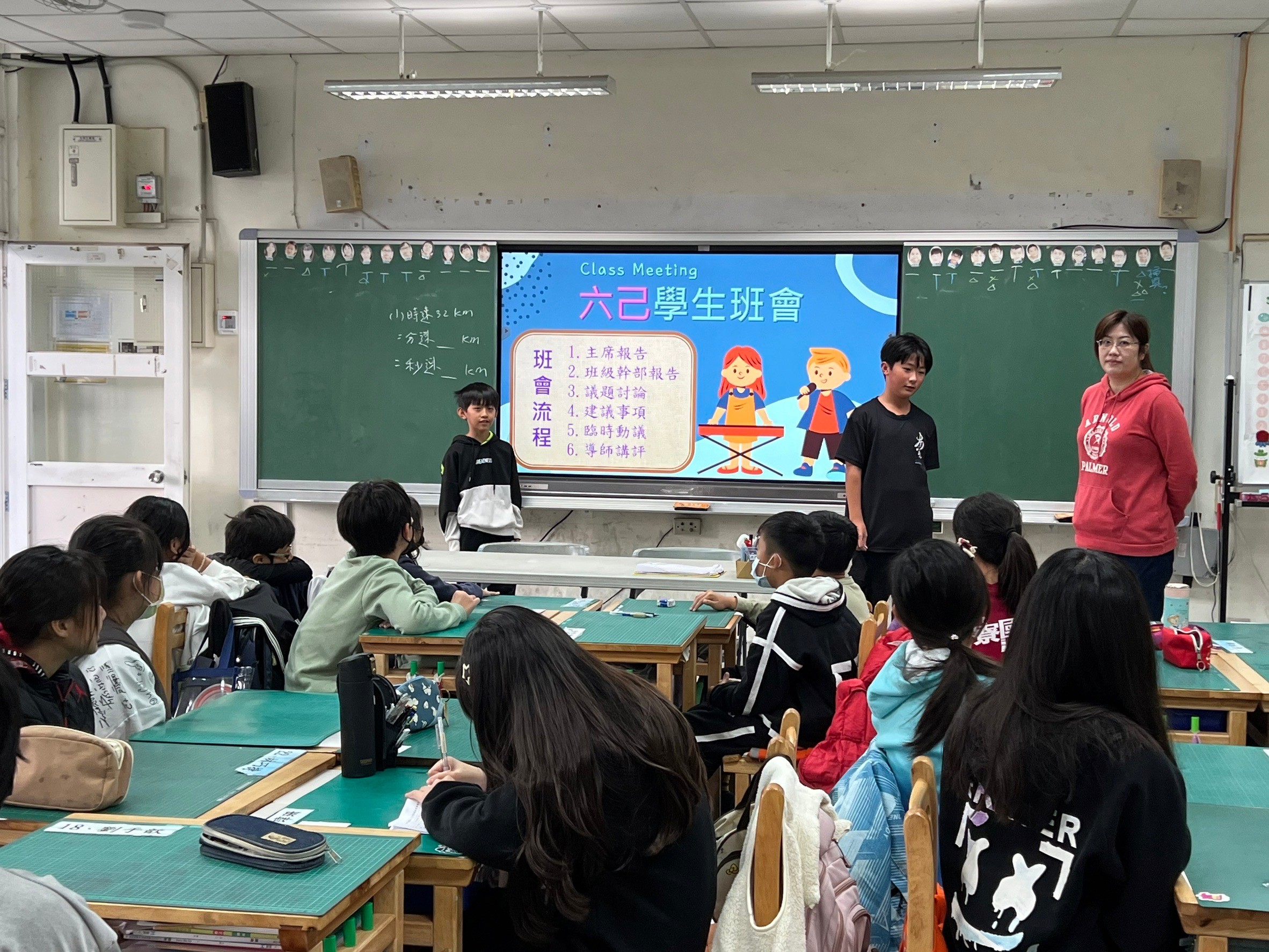 本週三~六年級各班進行這學期最後一次學生班會活動。「班會」是班級所有成員討論議題、意見溝通的最佳時刻,透過集思廣益,異中求同,在「少數服從多數,多數尊重少數」的民主原則下,獲得各項議題的共識並達成一致的結論。培養學生的自治能力、注重生活教育、建立班級和諧氣氛及團結心.這也就是一種最基礎的「民主素養」課程。