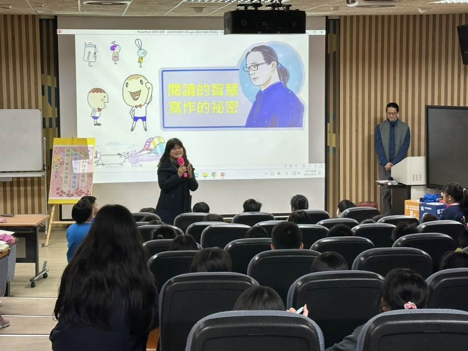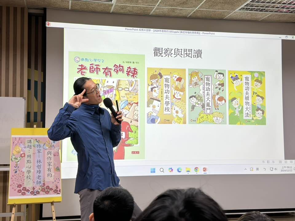 12月12日上午,大庄國小五年級五個班舉行了一場精彩的「作家有約」講座,邀請知名作家林哲璋老師蒞校,以他著名的作品《用點心學校》為主題,與學生分享寫作的靈感來源及創作的奧秘。許雅惠校長在開場中,特別提到自己的孩子也愛閱讀,尤其喜歡《用點心的學校》每次讀完就會期待下一本,這就是閱讀能持續的魔力。講座中,林哲璋老師幽默風趣的演講風格,讓學生們笑聲不斷。他分享說,作家的靈感來源於觀察與閱讀,並強調找到線索後舉一反三的重要性,這些都是成功創作的關鍵天賦。五年丁班的林同學表示:「今天上午林哲璋老師來到我們學校演講,發現老師的個性和我想像中的不同,充滿幽默感。他的書非常有趣,我希望能繼續閱讀更多他的作品。」五年甲班的陳同學則說:「哲璋老師的個性十分幽默,而且常常會和學生互動。老師說:「寫作要有三個技巧:一、優美的詞句,二、深遠的意義。三、不要和別人一樣。」讓我們聽完都獲益匪淺。希望下次能再邀請老師來。」此次講座不僅激發了學生對閱讀與寫作的興趣,也讓孩子們更深入了解作家背後的創作歷程。校方表示,未來將繼續舉辦更多這樣的活動,讓學生透過與作家的近距離接觸,拓展視野,增進文學素養。