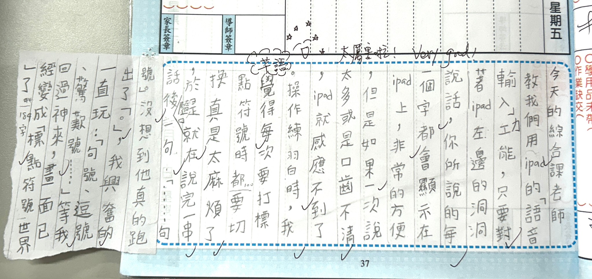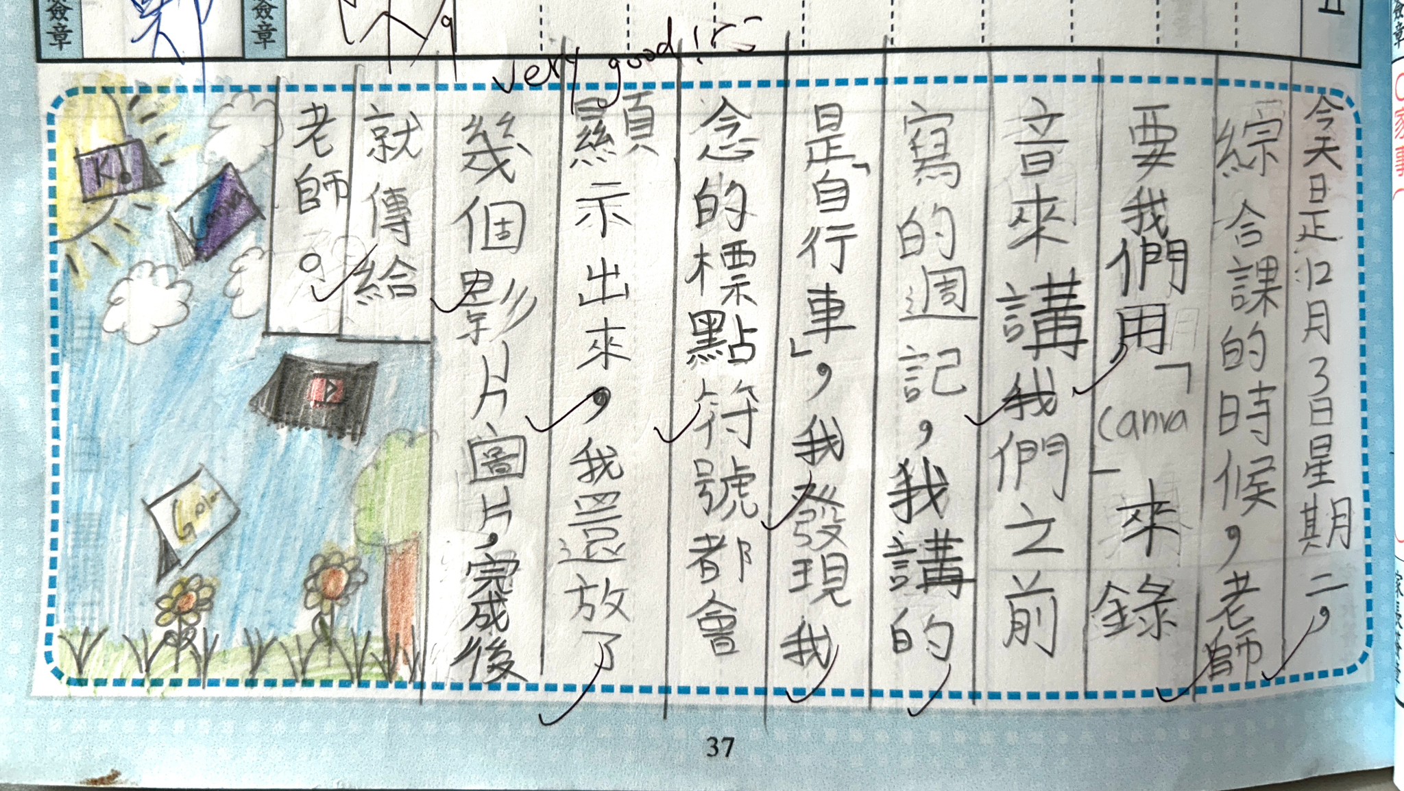 自己挑選聯絡本週記,將週記內容念給「Canva」「聽」,「Canva」還會幫忙打字「寫」出來,練「標點符號」也只要念出來,「。」、「,」、「冒號」等等直接輸入不用切換鍵盤,真是太方便有效率呢!