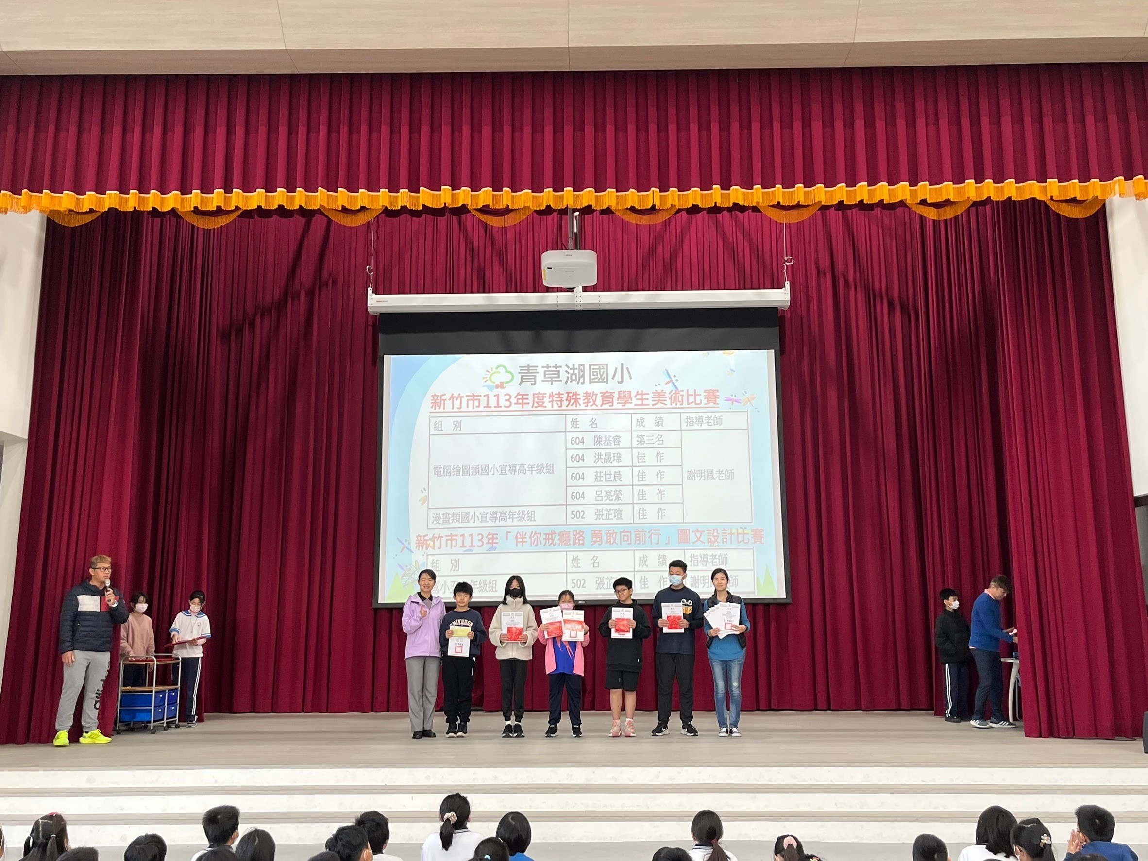 青小學生與老師踴躍參與113學年度的新竹市特教美展,並榮獲電腦繪圖類國小高年級宣導組第三名、電腦繪圖類國小高年級宣導組佳作以及漫畫類國小宣導高年級組佳作,其他的送件作品亦是件件精采,謝謝明鳳老師、宛倫老師指導孩子們參與比賽,讓學生們有展能的舞台。輔導室團隊將孩子們此次參賽的送件作品在圖書館展出,讓全校師生一起欣賞美麗的畫作,一起看見特殊,看見潛能,增進校園的融合力!