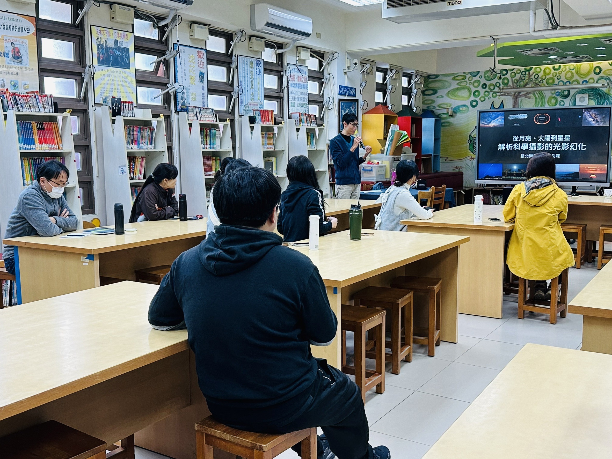 配合科學攝影活動,邀請目前任教於新北市崇德國小的蔡岳霖老師,以月蝕、日蝕及觀察昆蟲攝影作品多次榮獲科博館科學攝影大賽,除了積極推廣國小天文教育,也在自然觀察多所耕耘,集結同好在崇德國小成立了螢火蟲相關課程與教室,並屢次擔任台中科學博物館專題撰稿人員,在科學觀察上有著豐富的經驗與教學經歷。岳霖老師準備的內容豐富多元,從基礎的科學攝影技巧到天文現象的拍攝,如日蝕、月蝕、星象攝影,再到微觀世界的觀察,如螢火蟲的生態攝影,講座特別提到了一些秋冬才會出現的螢火蟲種類,如山窗螢,讓大家了解到,螢火蟲並非只有在夏季才能看到,只要選擇對的季節和地點,也能欣賞到這些夜光精靈。