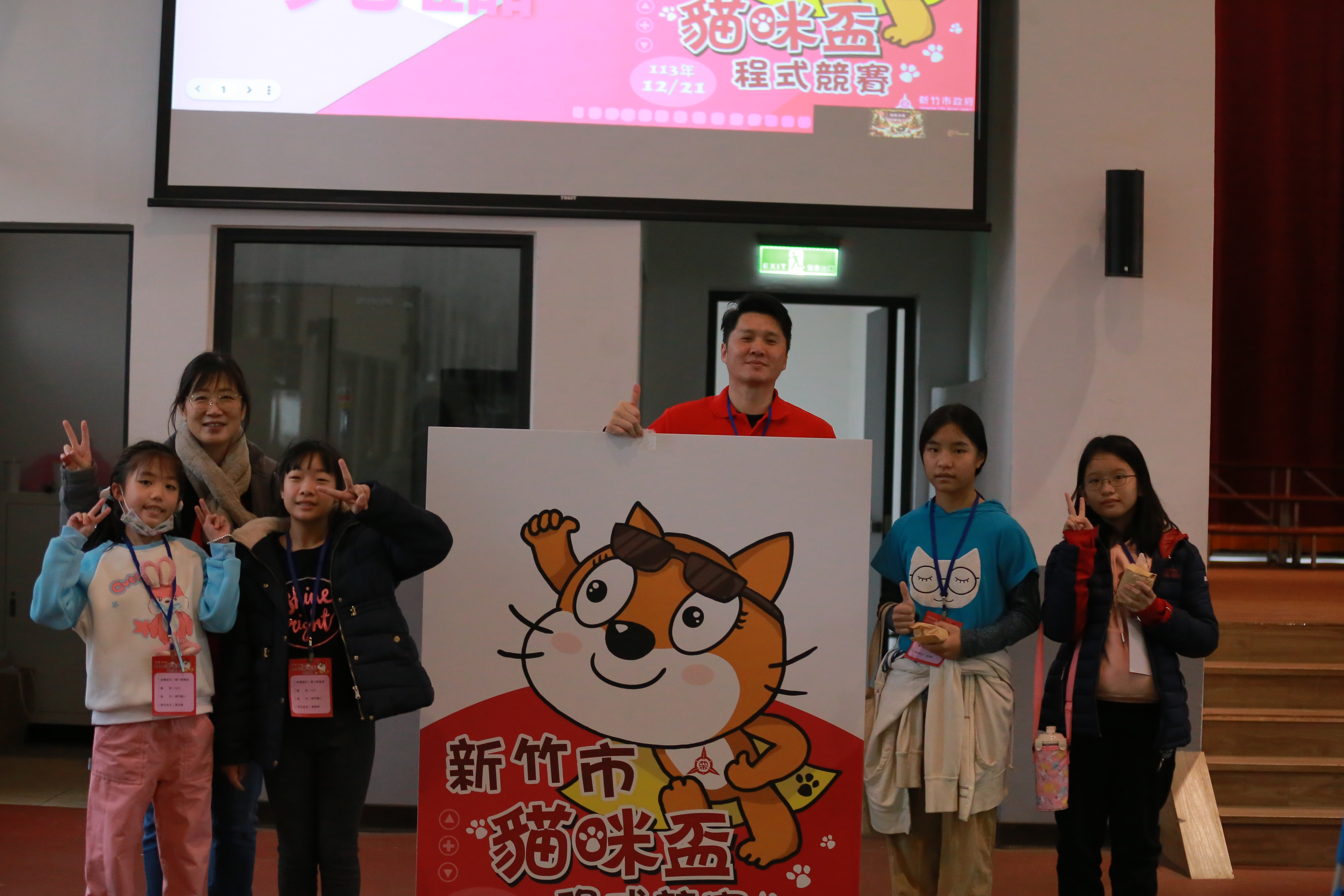 今年全國貓咪盃SCRATCH程式設計競賽新竹市市賽於12/21在本校盛大舉行,各組都要在三個小時內把作品呈現出來,本次動畫現場公布的題目是<校園超級英雄>,遊戲組的題目是<85210健康密碼>,恭喜獲獎的三組同學!!
