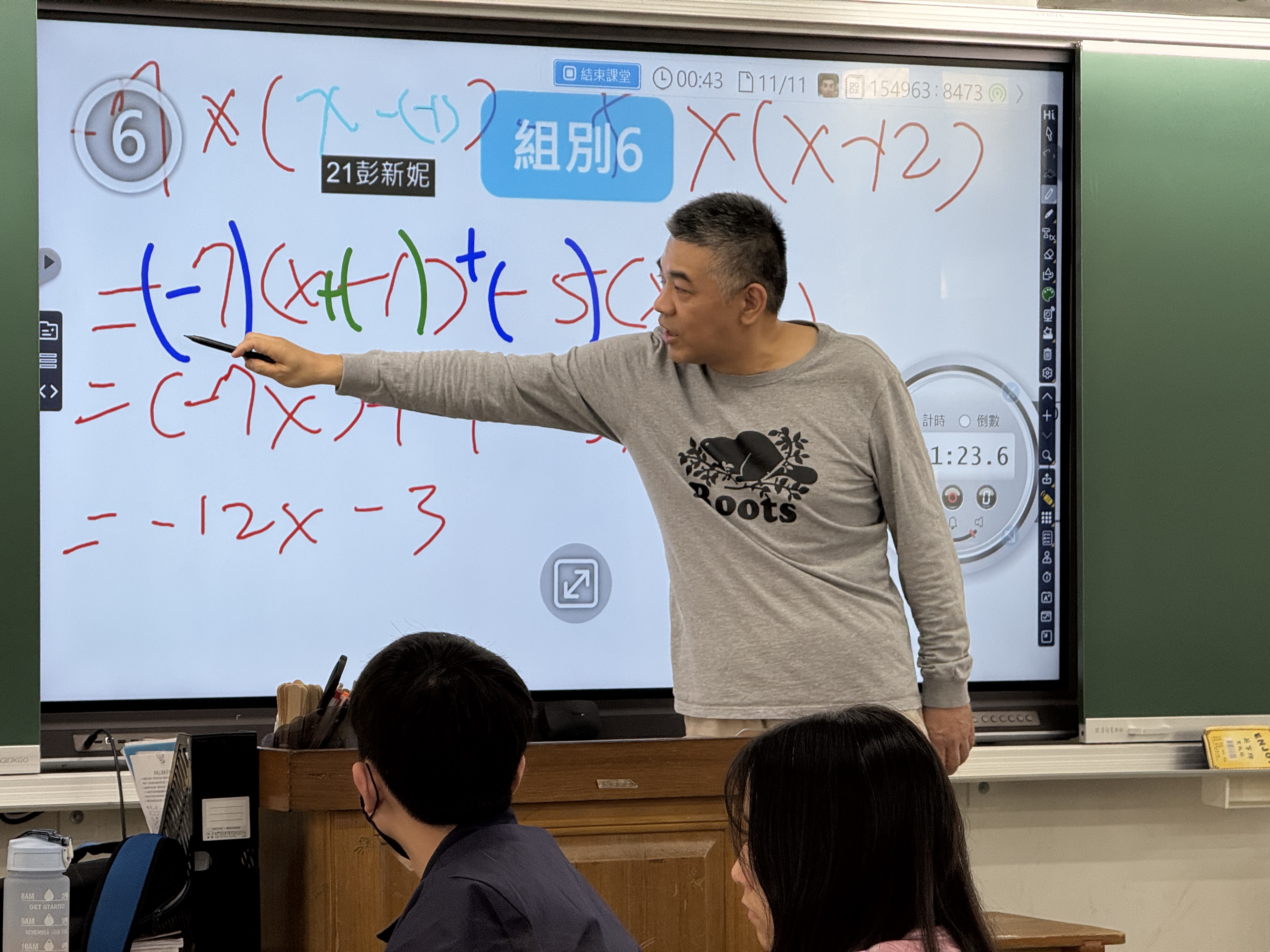 在數學課堂中,劉映吾老師為708班學生帶來了一場以「代數式的化簡」為主題的課程。課程分為「學生自學」「組內共學」「組間互學」及「教師導學」四大環節,並結合因材網平台與心智圖工具,讓學生透過異質分組討論高錯題率問題,深化學習理解。同時,劉老師以「先學後教」的理念,鼓勵學生養成良好的預習習慣,提升自我學習的主動性。課堂上,學生積極參與,展現了高效的團隊合作能力與對數學學習的濃厚興趣。