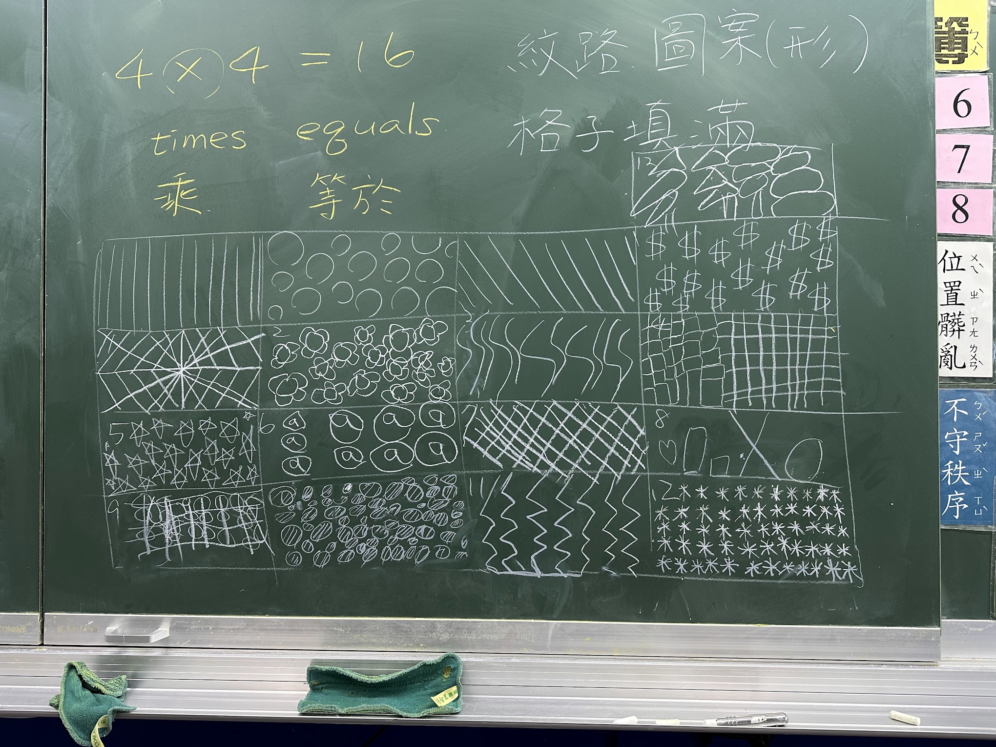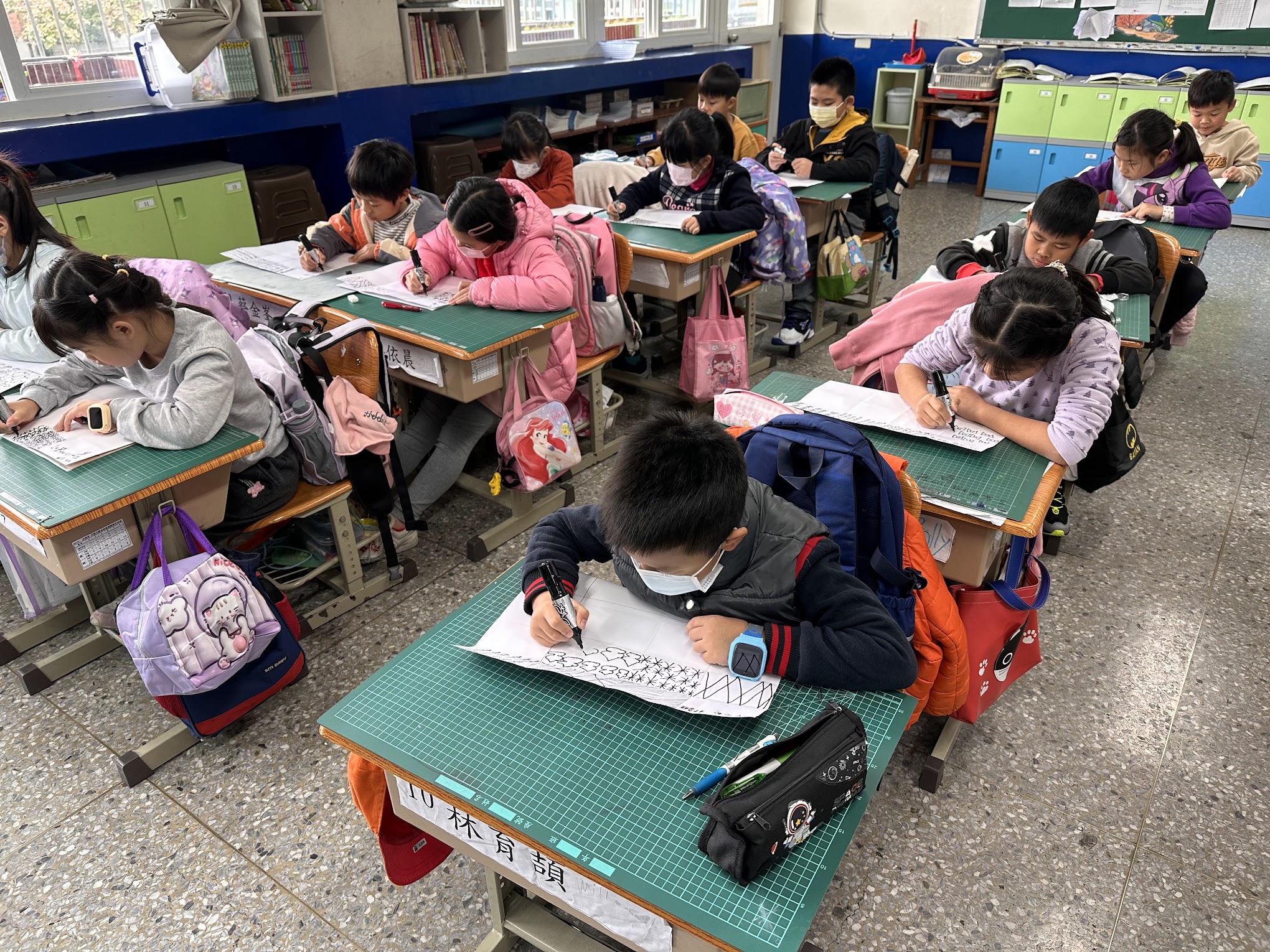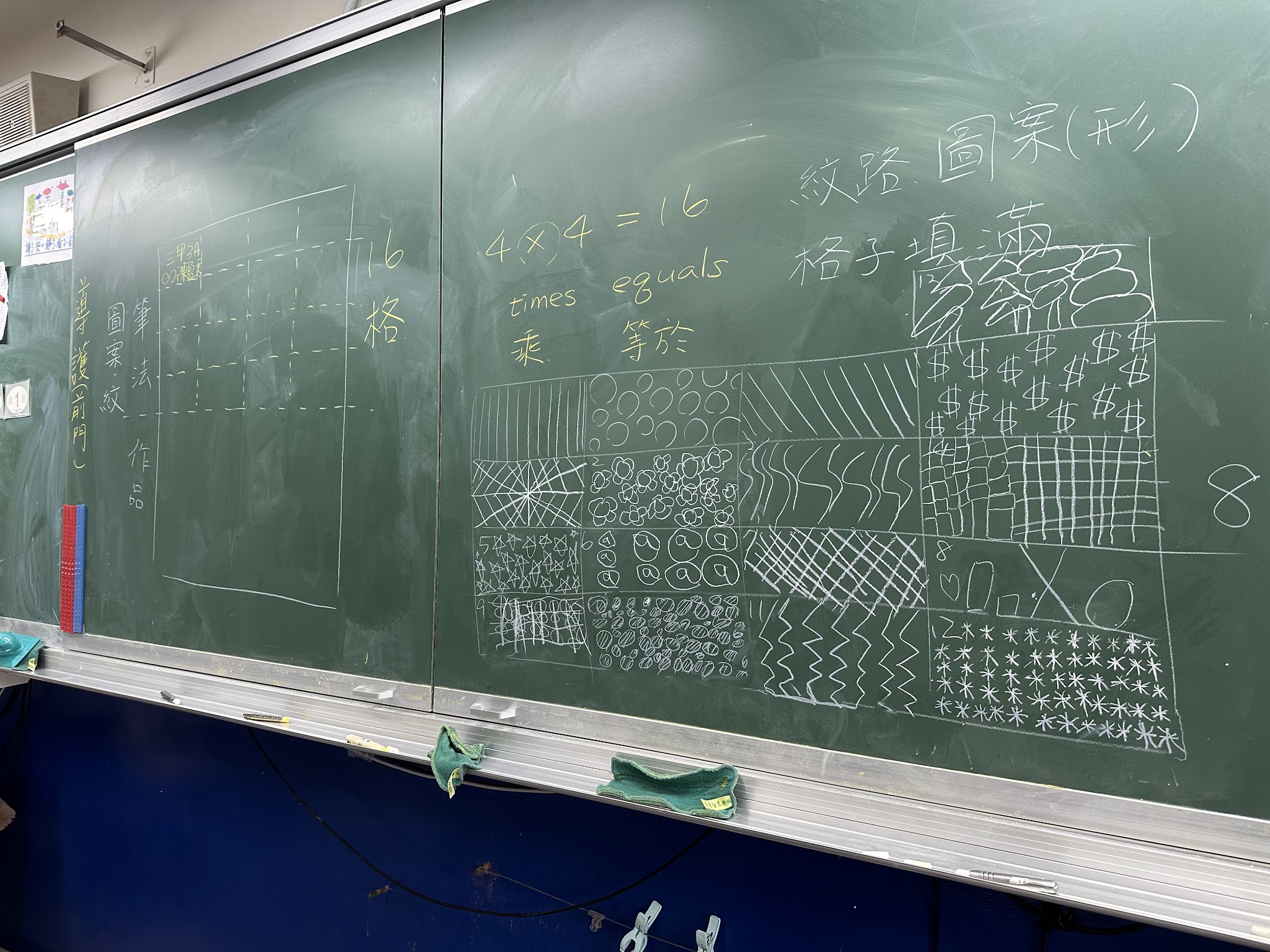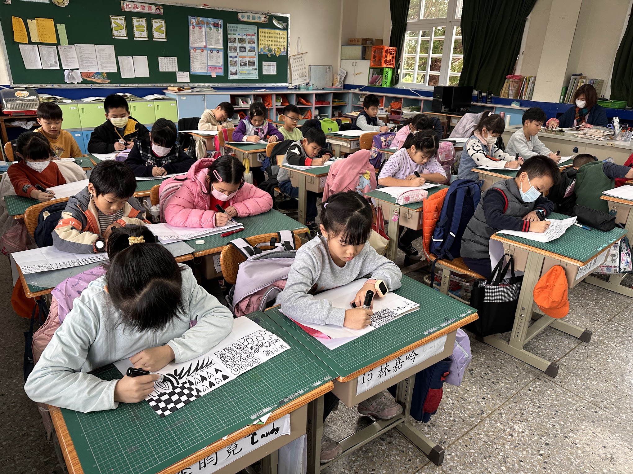 在三年級的視覺藝術課中,學生們沉浸於單色畫的創作中。課堂上,老師引導孩子們發揮想像力及創造力,將圖紋填滿16格的畫紙,並強調構圖和線條的多樣性。從星星、波浪到複雜的幾何圖案,學生們專注於創造獨特的圖紋設計。