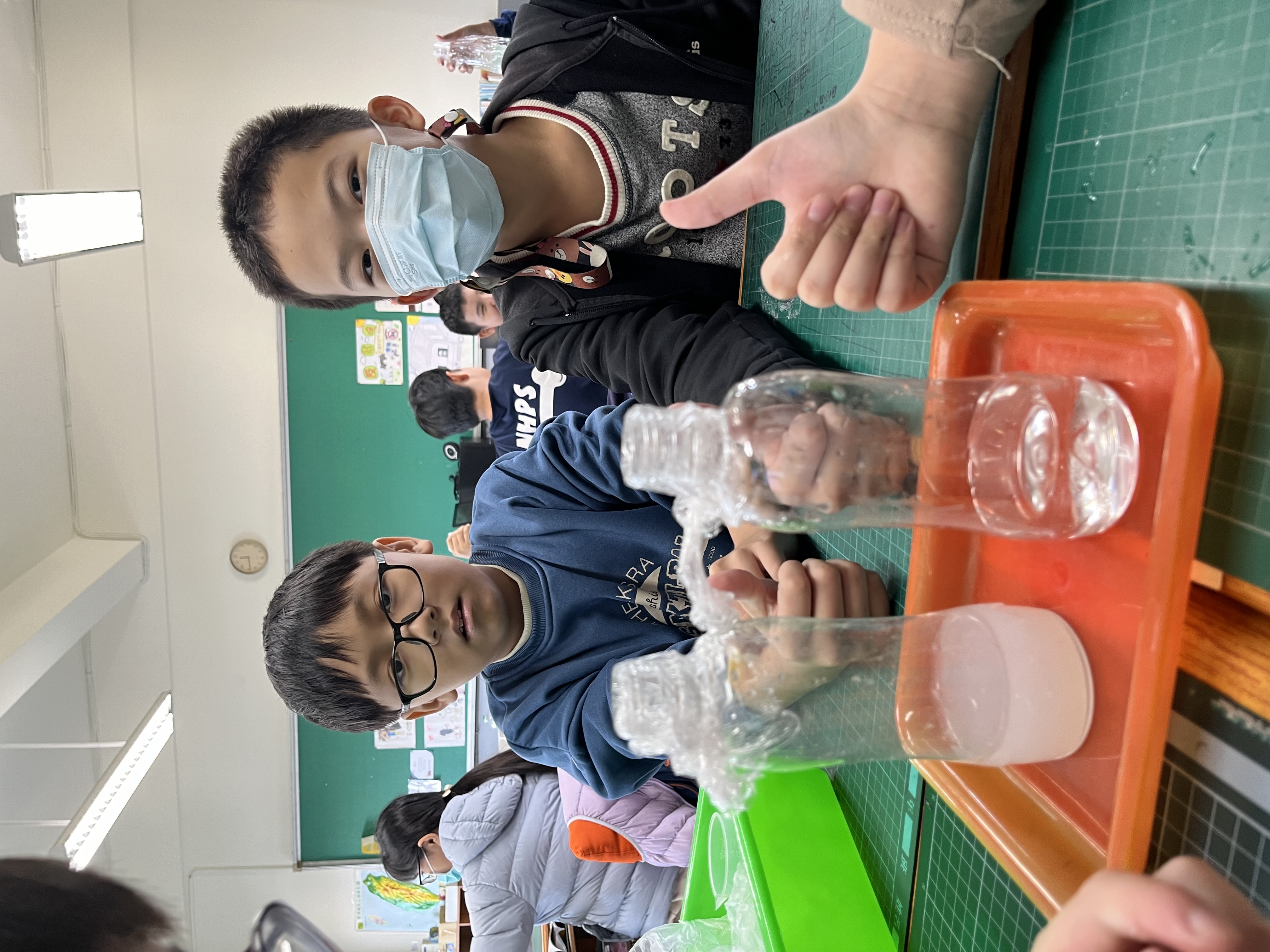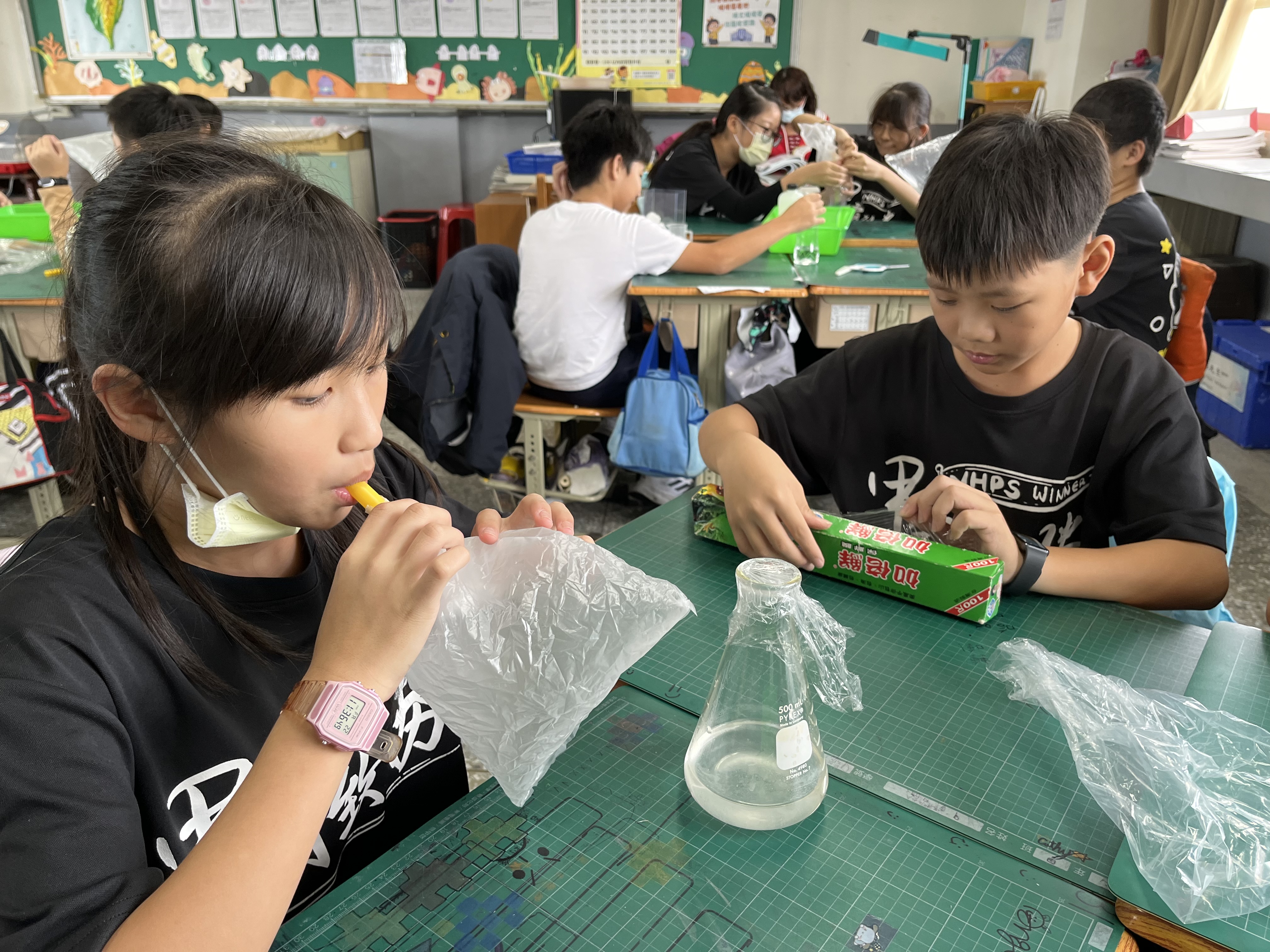 這堂課我們利用澄清石灰水來檢測二氧化碳!當它遇到二氧化碳時,就會變得混濁。我們可以用塑膠袋收集自己呼出的氣體,然後把這些氣體注入澄清石灰水中。你會發現,石灰水變得混濁了!這樣就能證明我們呼出的氣體裡面有比空氣中更多的二氧化碳,這個實驗真的很有趣!