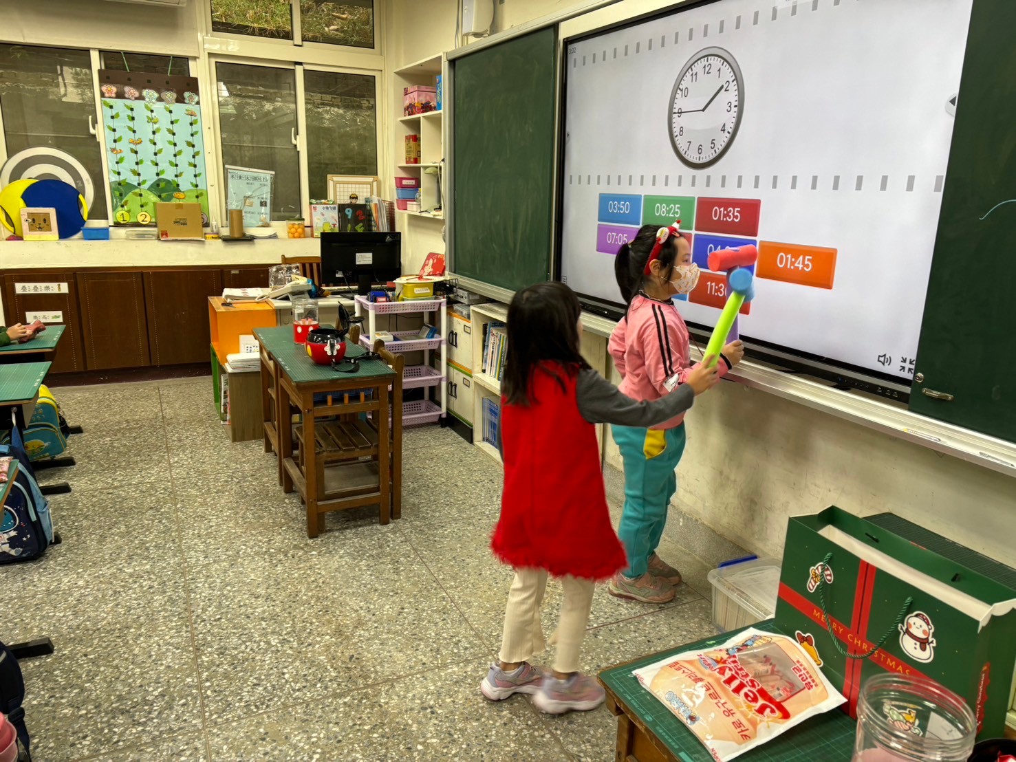 在這一全新學習模式中,學生們使用觸控式電視和iPad進行個別與集體互動,不僅能夠即時回饋學習結果,還能進行即時競賽。Wordwall這款互動式學習軟體,讓學生透過製作拼字遊戲、選擇題和填空題等方式,進行語文和數學等科目的練習。學生們可以依據老師設定的題目,利用觸控式電視進行集體操作,或是使用iPad在小組內進行個別學習,將傳統學習方式轉化為有趣的互動遊戲,提升了學習動機。