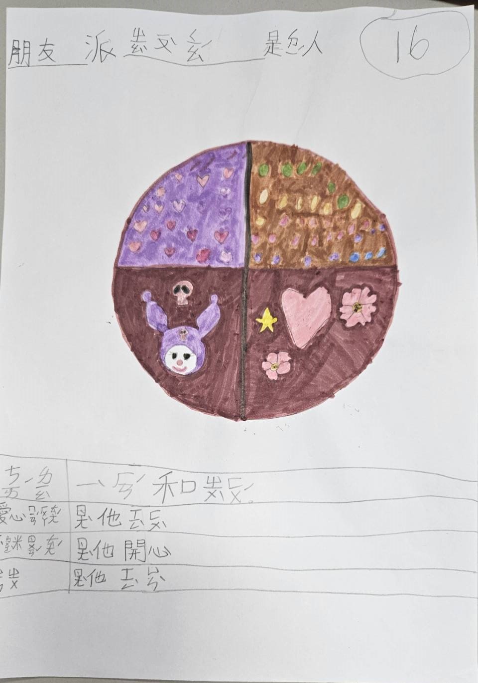 4.畫出自己的友情派:在學習單上,創作一個自己的友情派。