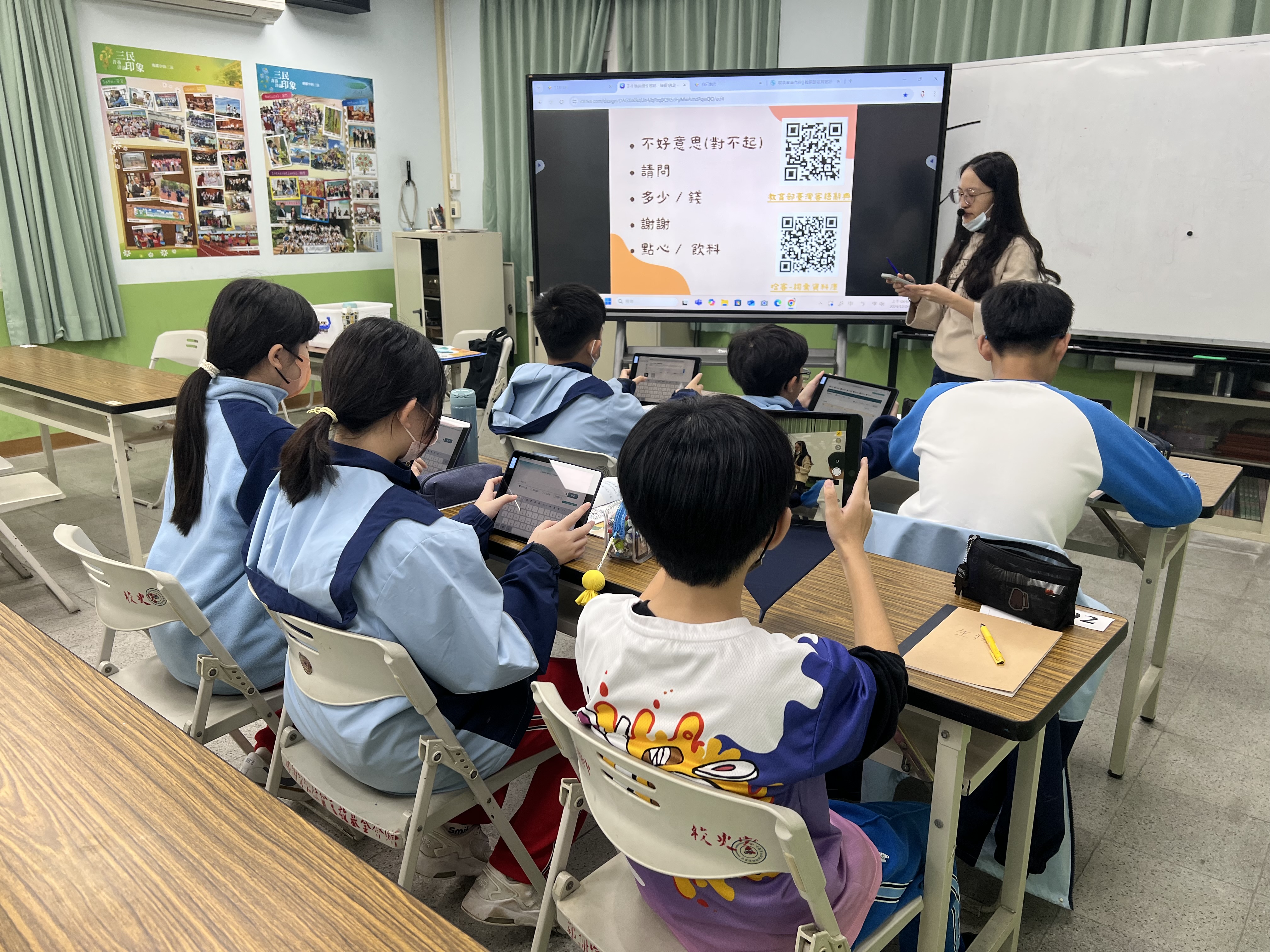 本校於113年12月26日由徐燕儀老師進行本土語領域的公開授課活動,主題為「無共樣个客話」,首先介紹「四海大平安」五種臺灣客語腔調,與使用的地區,並利用影片〔客客客棧 EP8:大家一起來說客家話吧!(客語版)〕,導入並引發學生學習興趣。利用教育部哈課網路辭典,教學生如何查詢客語及練習發音。然後透過Padlet的錄音功能,請同學們各自查詢不同名詞的各種客語腔調的念法,跟著複誦後錄音上傳,讓其他同學猜猜看是哪一種腔調別,藉此讓同學知道各種腔調別的念法有何不同。