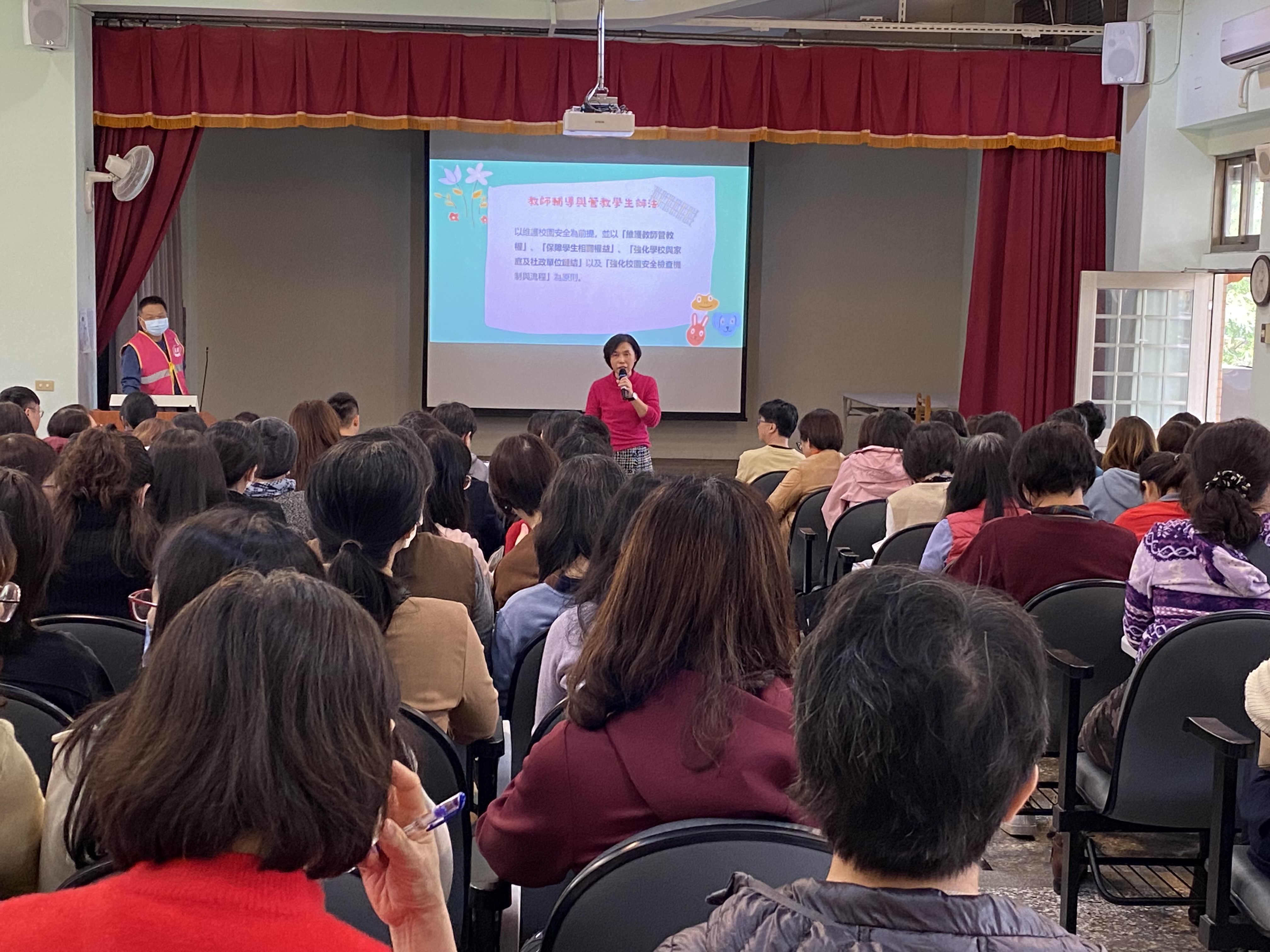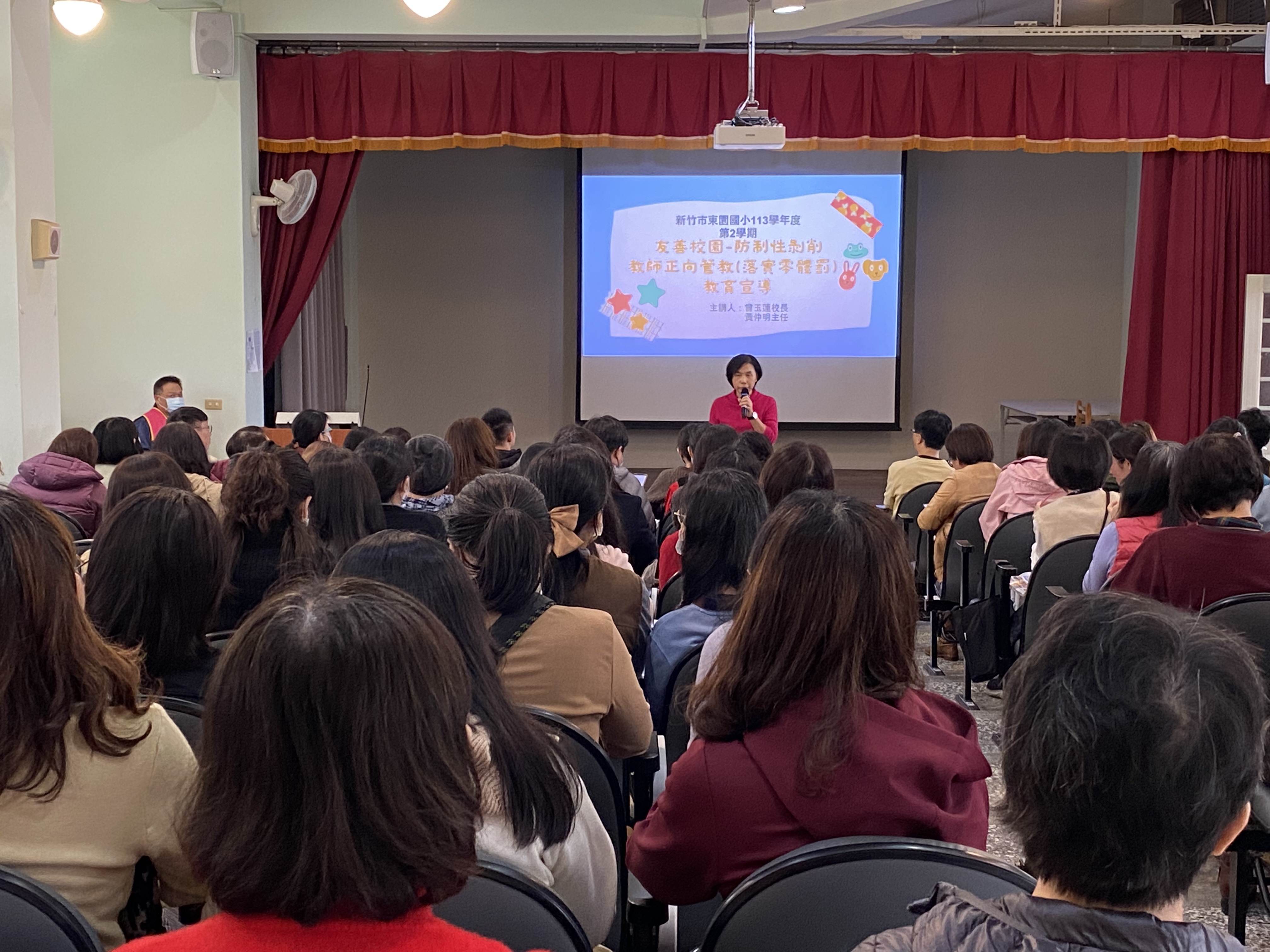 開學第一週的全校教師會議,玉蓮校長及仲明主任提醒全校教師做好班級經營管理,積極掌握每位學生在校的人際互動、網路使用及網路交友情形,落實正向管教與輔導工作,若發現學生有被不當對待之情事發生,應立即通知學務處,並依法定通報時效內,完成社政校園安全權責通報,並請老師們利用課程融入的時間持續強化法治教育、防治性剝削、反毒與反霸凌等議題之宣導,讓每位學生能夠辨識不當行為,懂得保護自己,並且學會如何向老師或家長尋求幫助,共同營造一個互相尊重與彼此關愛的和諧且友善的學習環境,讓每位學生都能夠無懼的追求夢想,克服各種挑戰,健康成長。