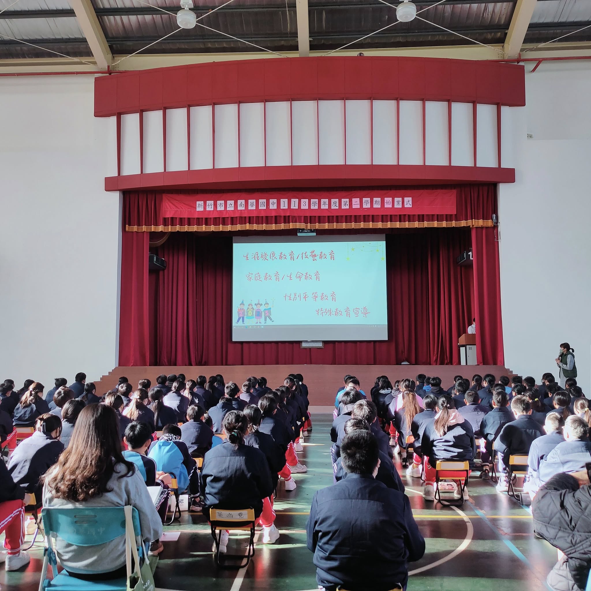 在充滿朝氣的開學日清晨,由張蔚雯校長領銜全體師生進行友善校園宣示並帶來開學的勉勵回顧過去展望未來。接棒各處室主任帶來關於學習上生活上的提醒及叮嚀。從同學炯然有神的眼神中,相信大家都準備好囉!