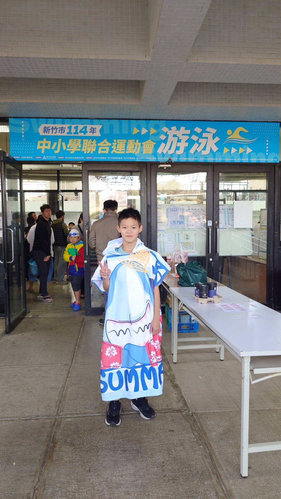 賀!五年五班陳奕帆同學參加114年新竹市中小學聯合運動會游泳比賽,在一群水中蛟龍中獲得國小男子組50公尺蝶式第八名!!