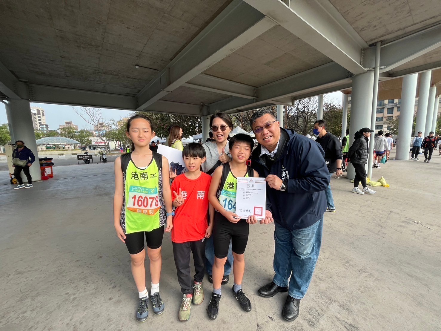 感謝教育處林立生處長的頒獎加持,港南國小在家長會、志工團、蕙風教練與學校同仁的支持與努力之下~連續三天「獎」不完!身為港南人,於有榮焉!港南田徑,真棒!感謝教育處及所有賽會承辦人員的辛勞。