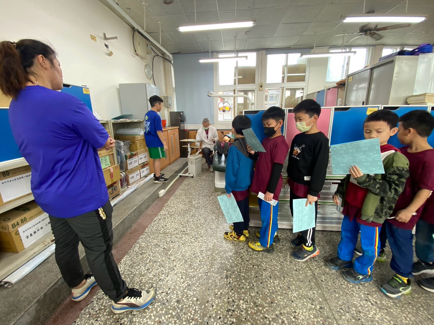 本學年度牙齒健檢小天使是即將畢業的六年級三位大哥哥,多虧有他們的細心協助、在旁說明檢查的過程,同時也提醒著正等待檢查的弟妹們須留意的地方。
